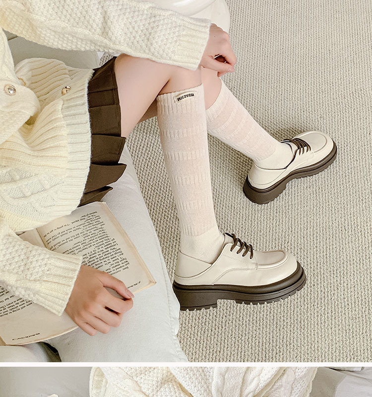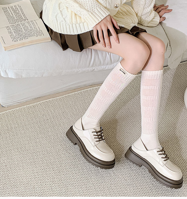 뼈없는 스택 양말 어린이 봄과 가을 빈티지 고층 빗질 면 작은 가죽 신발 긴 양말 슬림핏 커프 양말