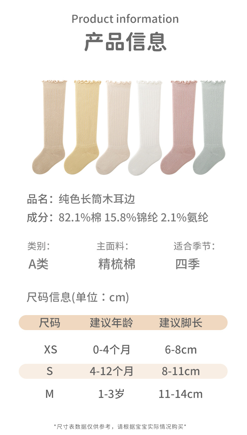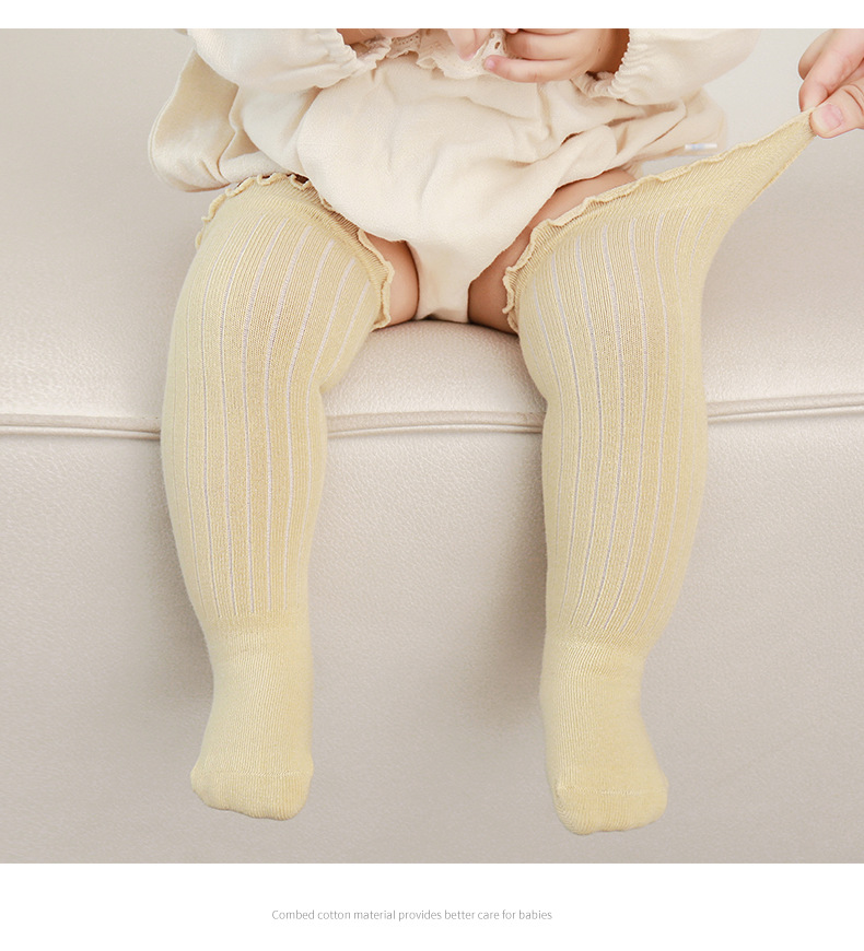 봄과 가을 따뜻한 나무 귀 가장자리 아기 높은 튜브 무릎 양말 다리없는 빗질 면 신생아 유아 느슨한 뼈없는 양말스토어 가기