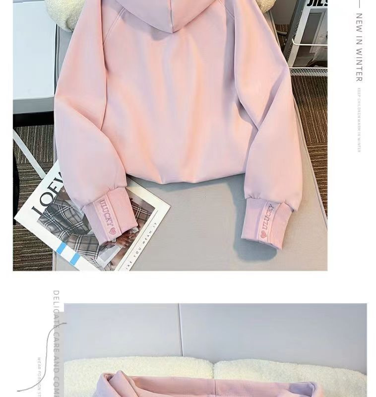 여아 운동복 가을/겨울 2023 새로운 겨울 원피스 웨스턴 스타일 탑 소녀 한국 스타일 가을/겨울 기모 후드 탑 여성용스토어 가기