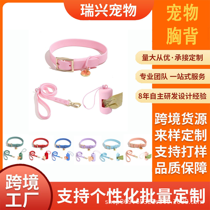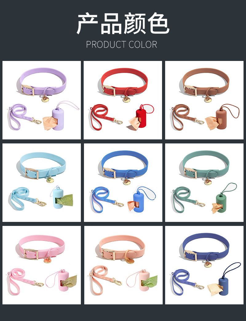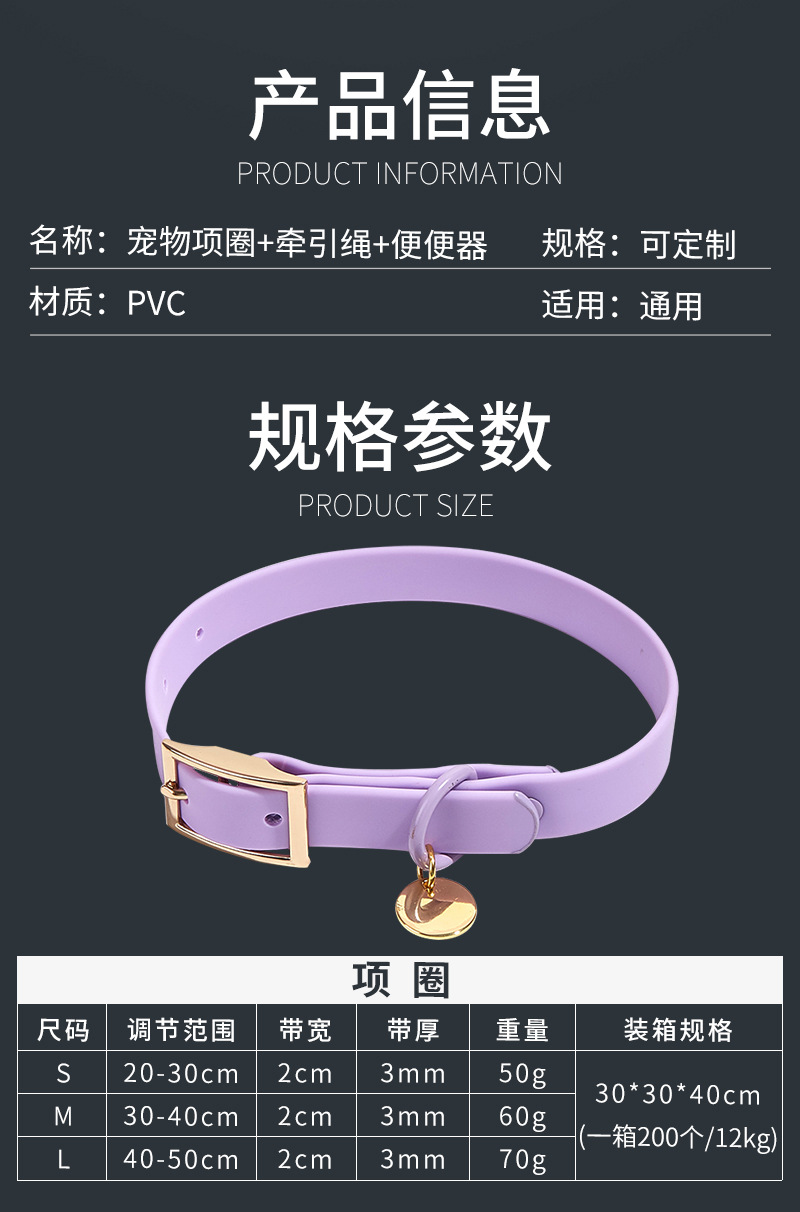 재고 개 방수 PVC 애완 동물 가죽 끈 세트 작은 중간 큰 개 걷는 로프 칼라 칼라스토어 가기