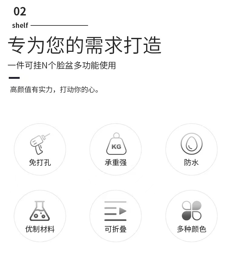 도매 접이식 벽걸이 세면기 랙 주방 및 욕실 비 천공 보관 랙 욕실 화장실 욕조 세면기 랙