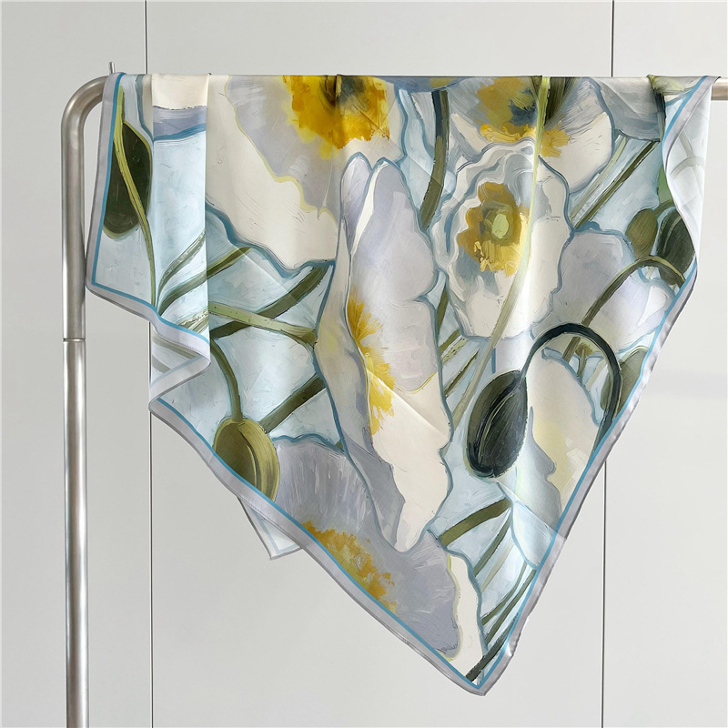 항저우 실크 여성 봄과 가을 한국 스타일 올 매치 90 크레이프 새틴 스퀘어 스카프 뽕나무 실크 스카프