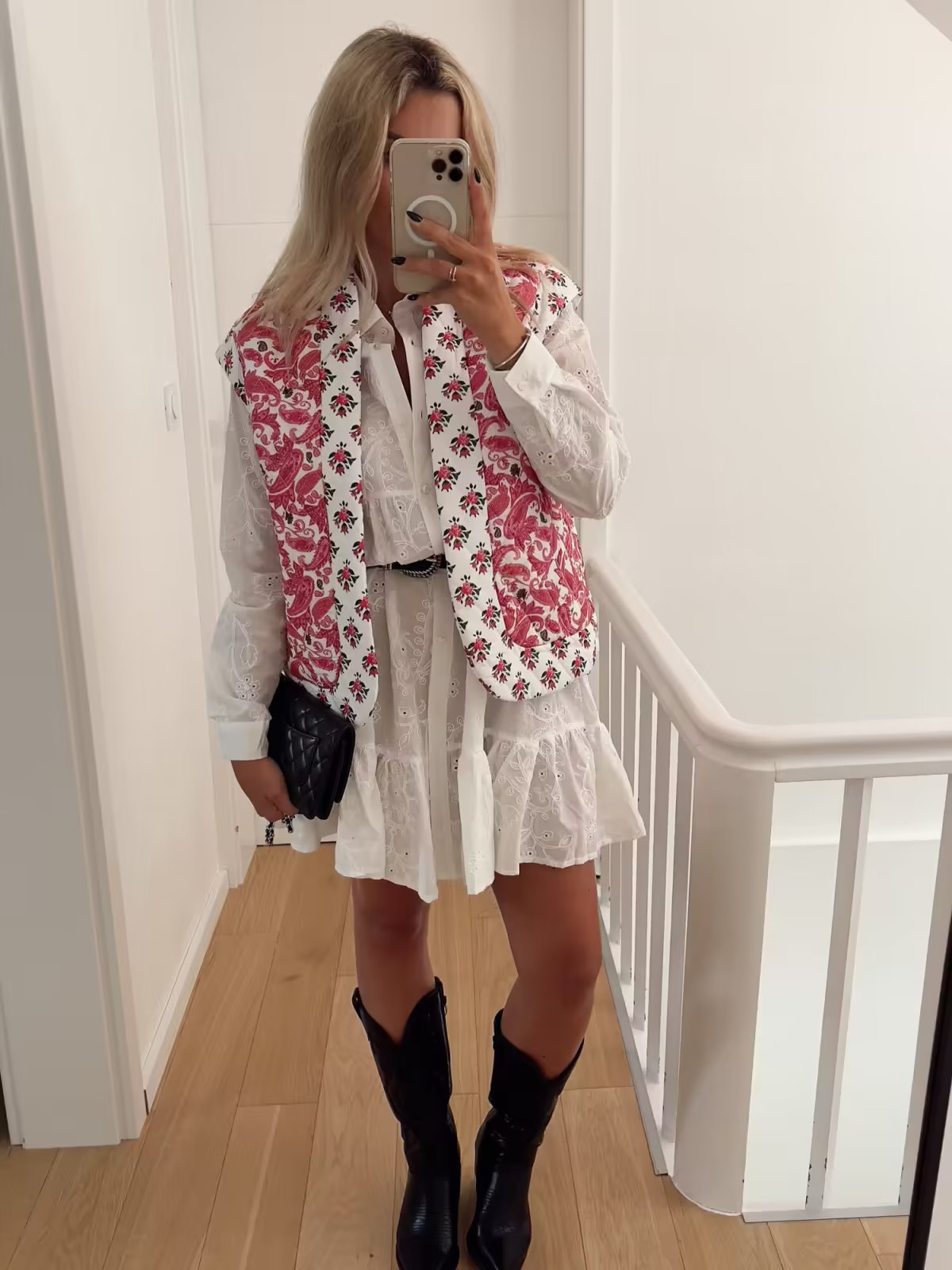2024 가을 겨울 신상 유럽 및 미국 스타일 여성 스트리트 프린트 퀼팅 코튼 스플라이싱 조끼 재킷 w028 5887