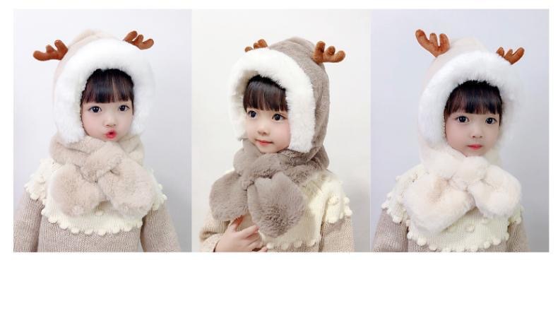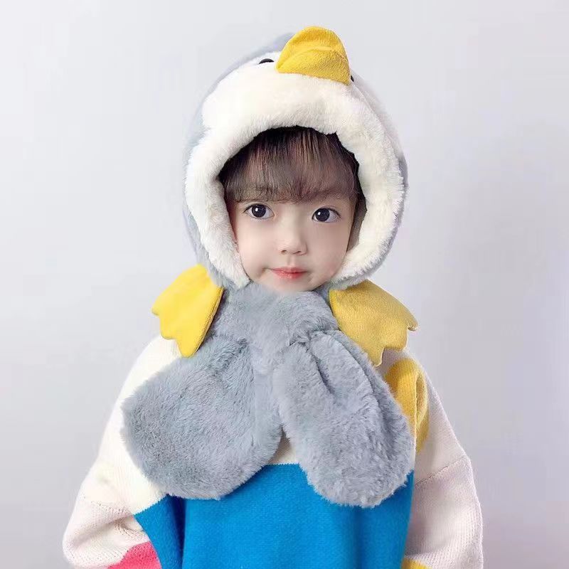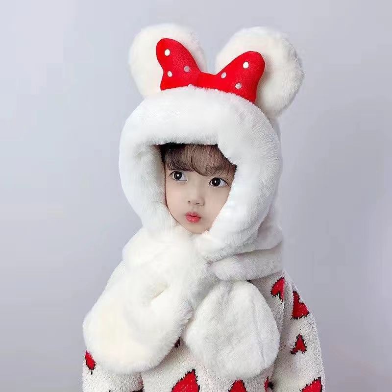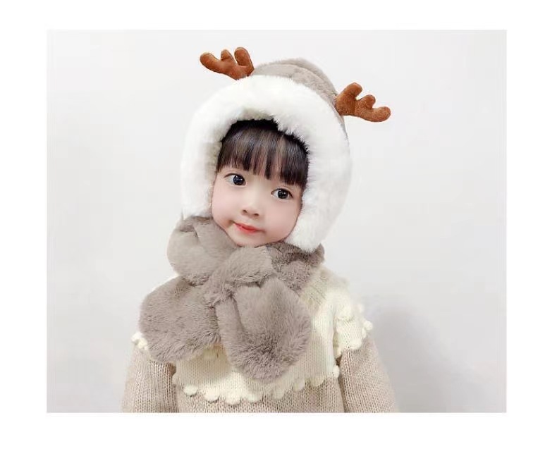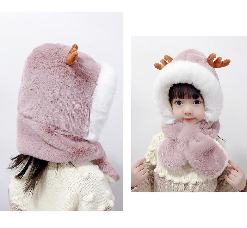 1-6 세 겨울 어린이 따뜻한 원피스 모자 귀여운 만화 모자 기모 두꺼운 소년 소녀 모자 스카프 하나