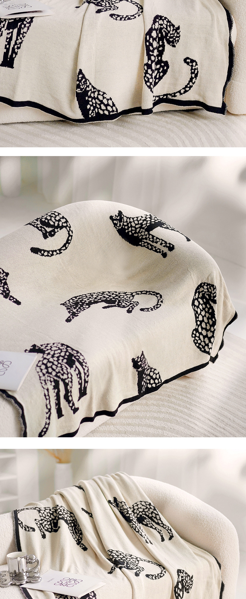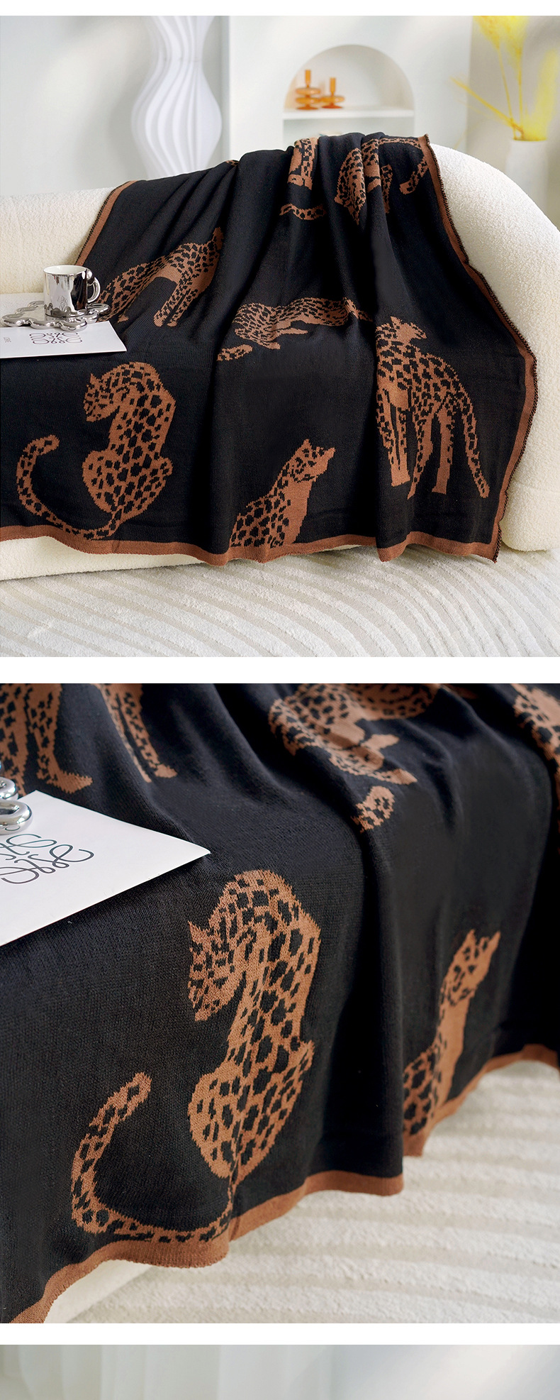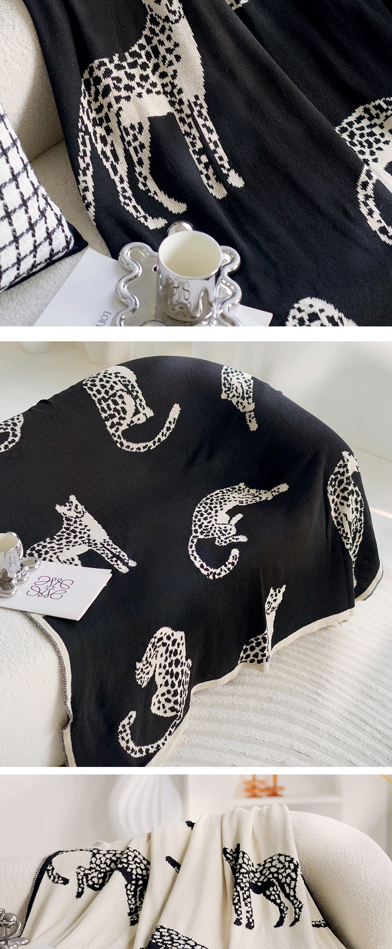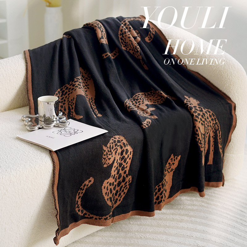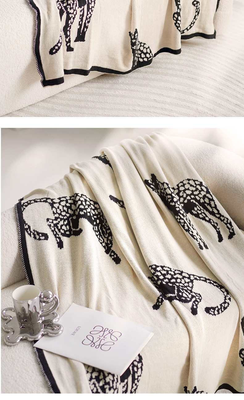 • 블랙 치타 니트 담요 앞면