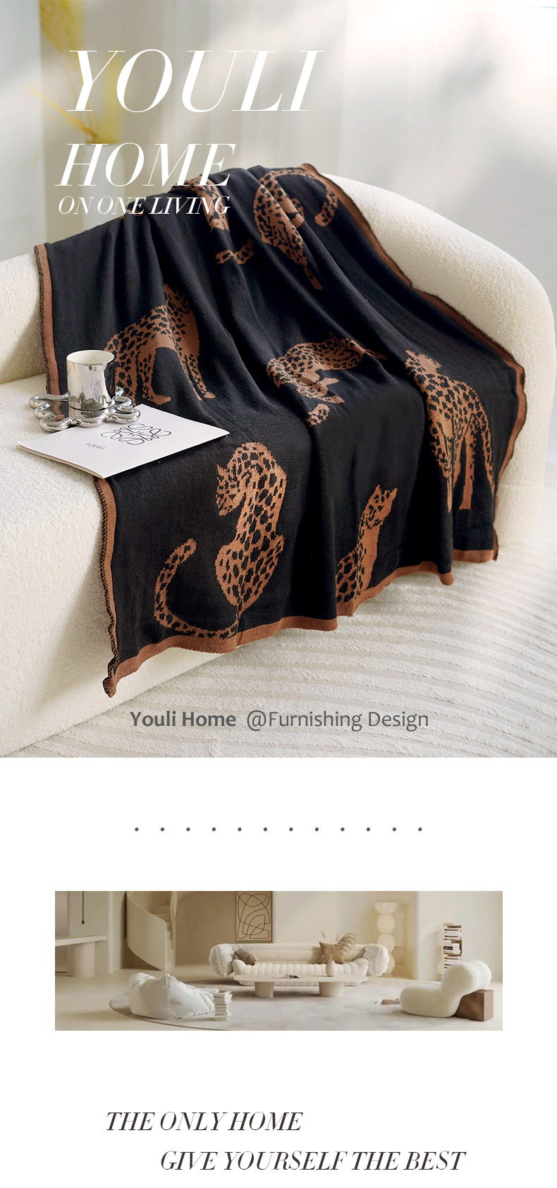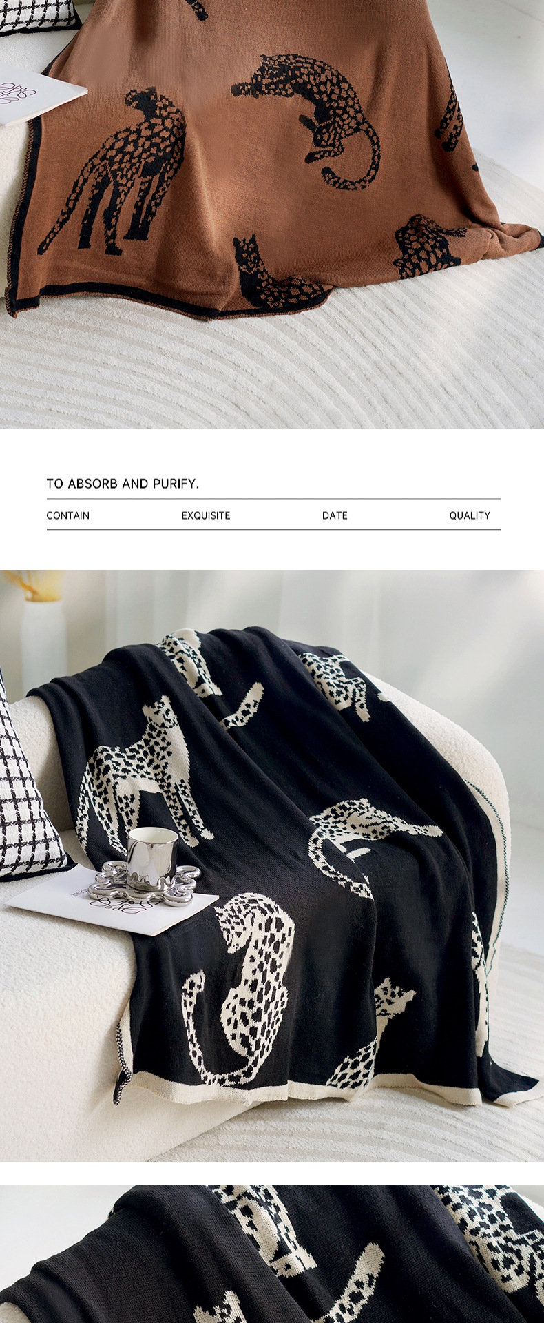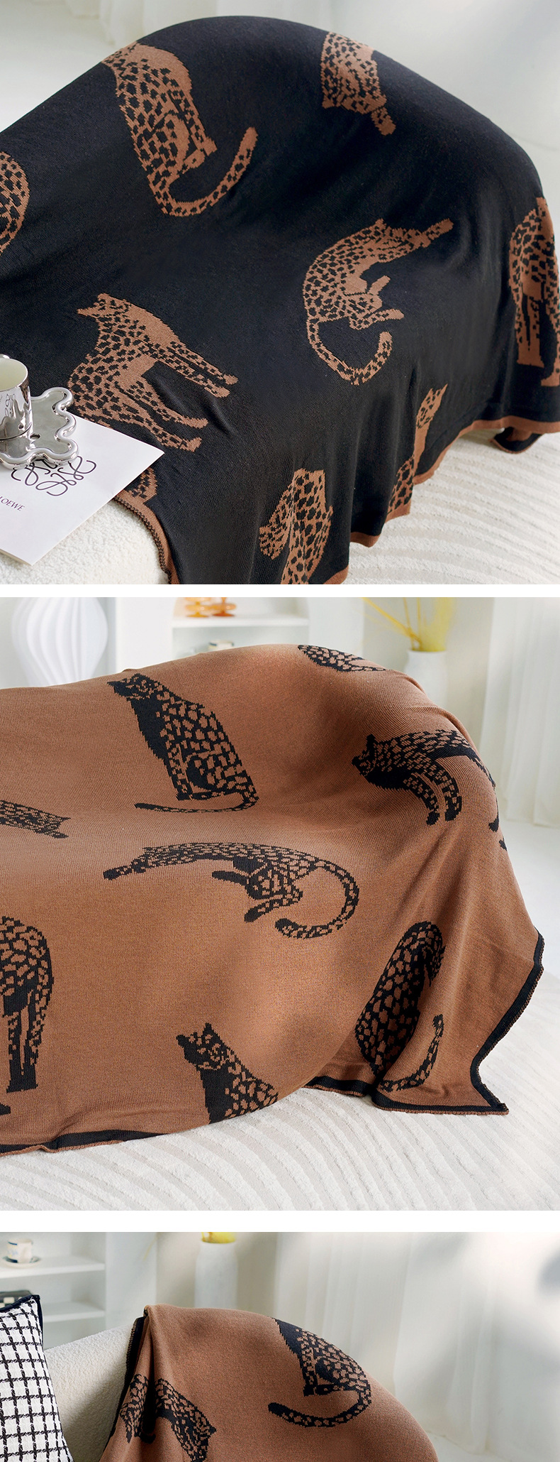 • 브라운 치타 니트 담요 앞면