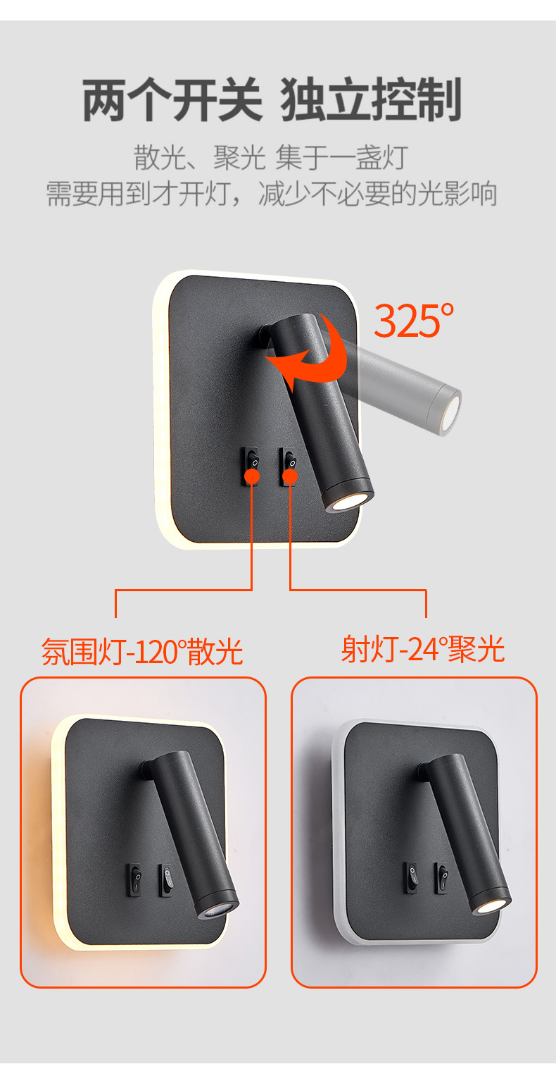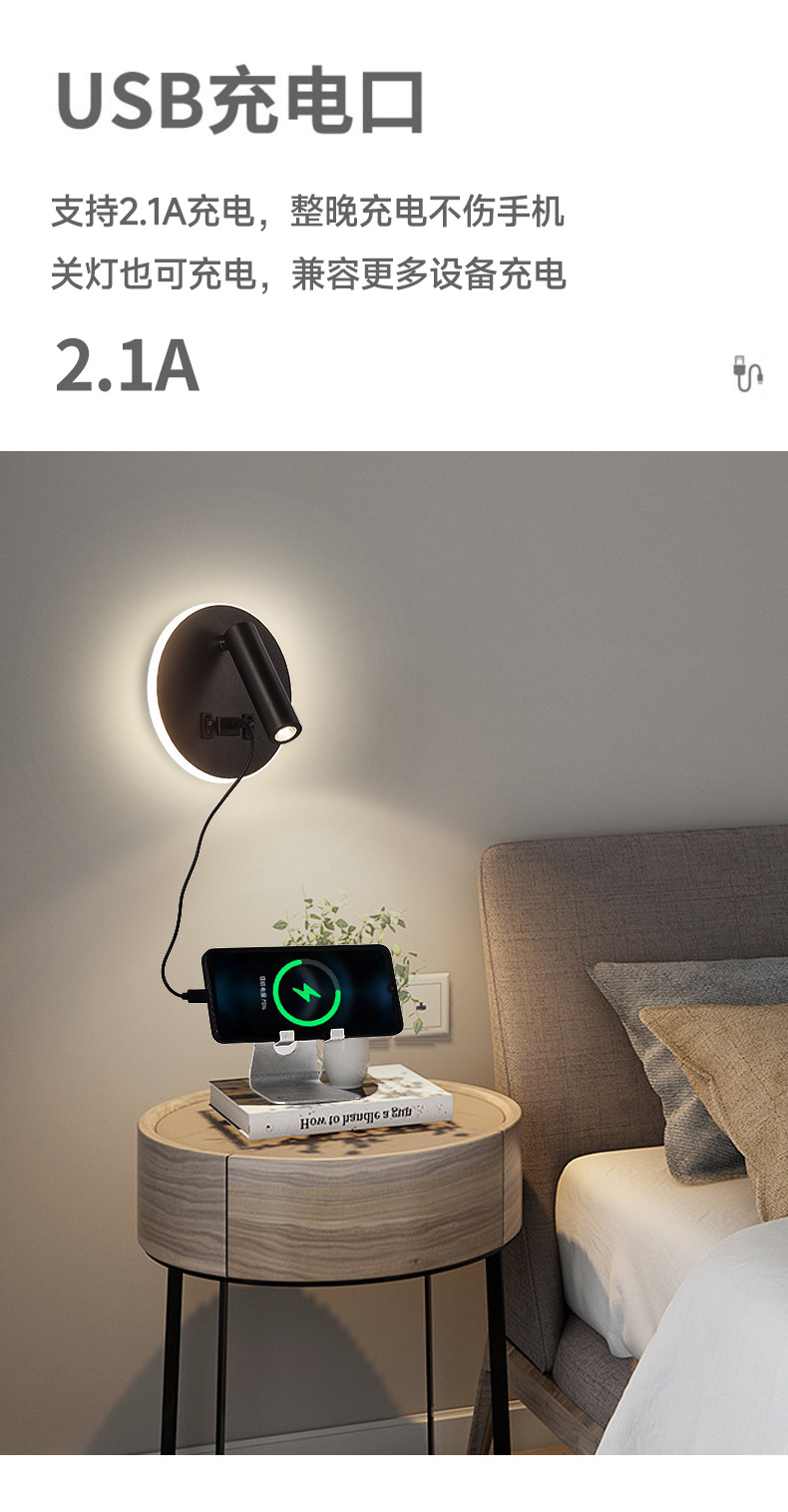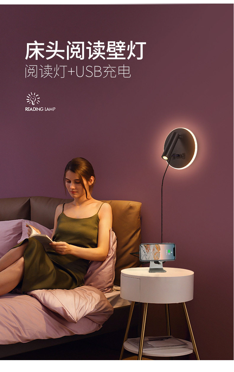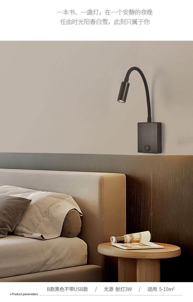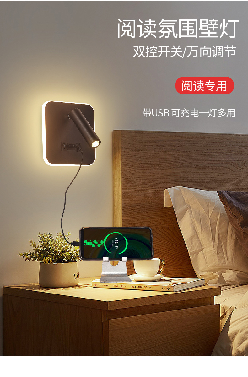 현대적인 간단한 침대 옆 독서 벽 램프 새로운 호텔 침대 옆 램프 LED 창조적 인 USB 벽 램프 거실 통로 램프스토어 가기