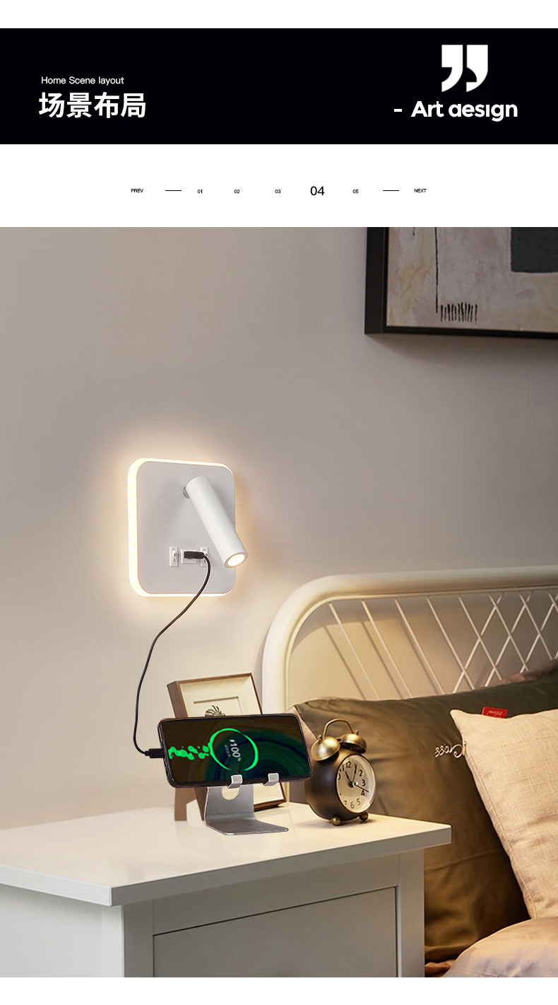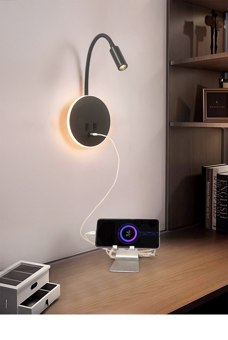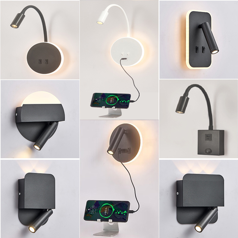 현대적인 간단한 침대 옆 독서 벽 램프 새로운 호텔 침대 옆 램프 LED 창조적 인 USB 벽 램프 거실 통로 램프