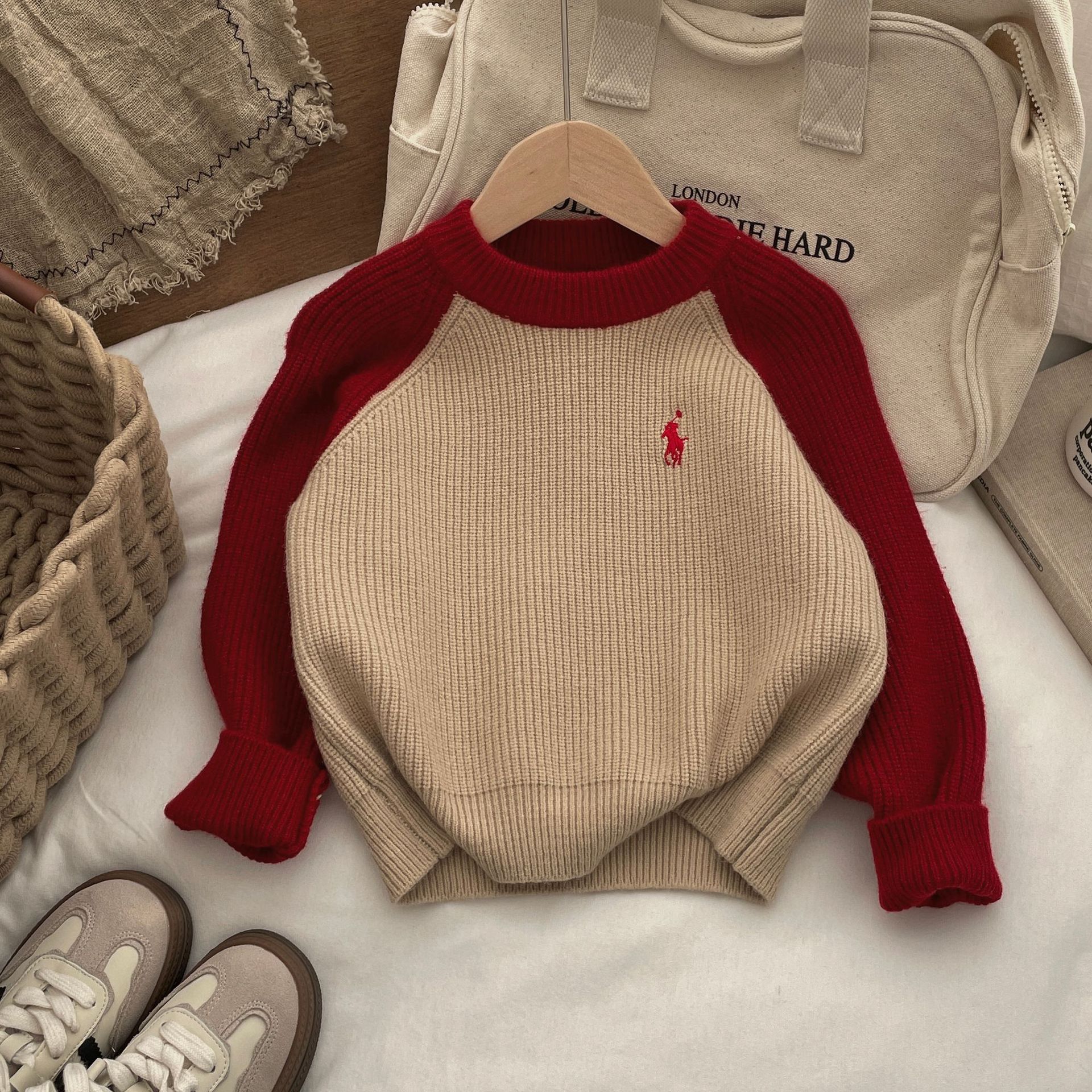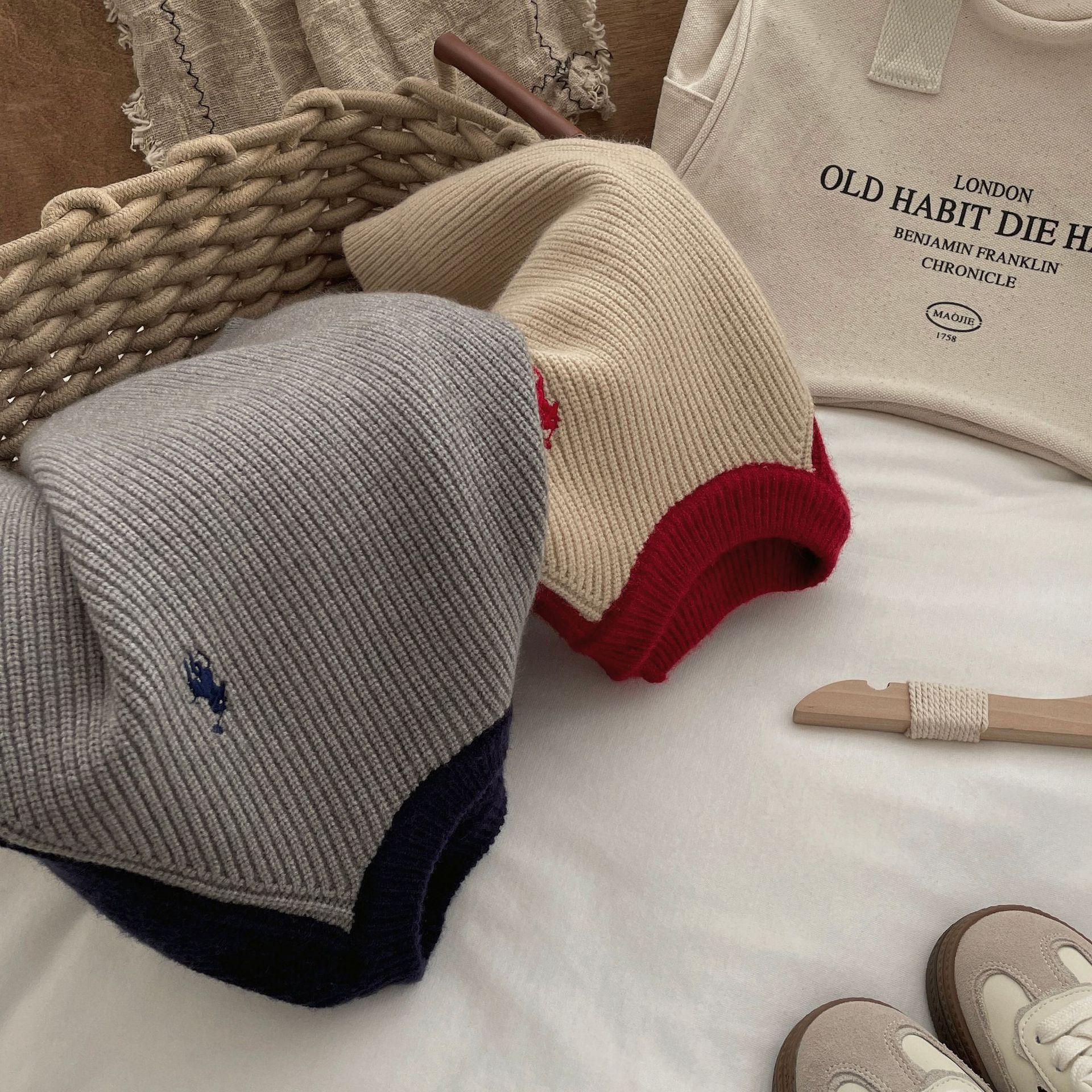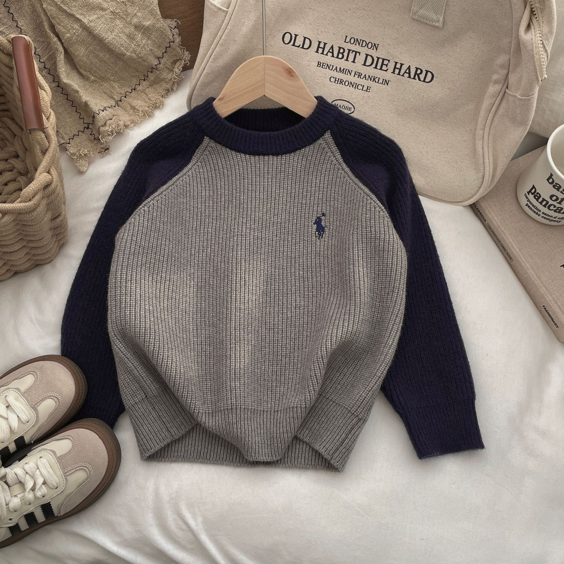 2025 새로운 가을, 겨울 어린이 스웨터 소년과 소녀 컬러 블록 라운드 넥 스웨터 한국 스타일 두꺼운 풀오버 스웨터 유행스토어 가기
