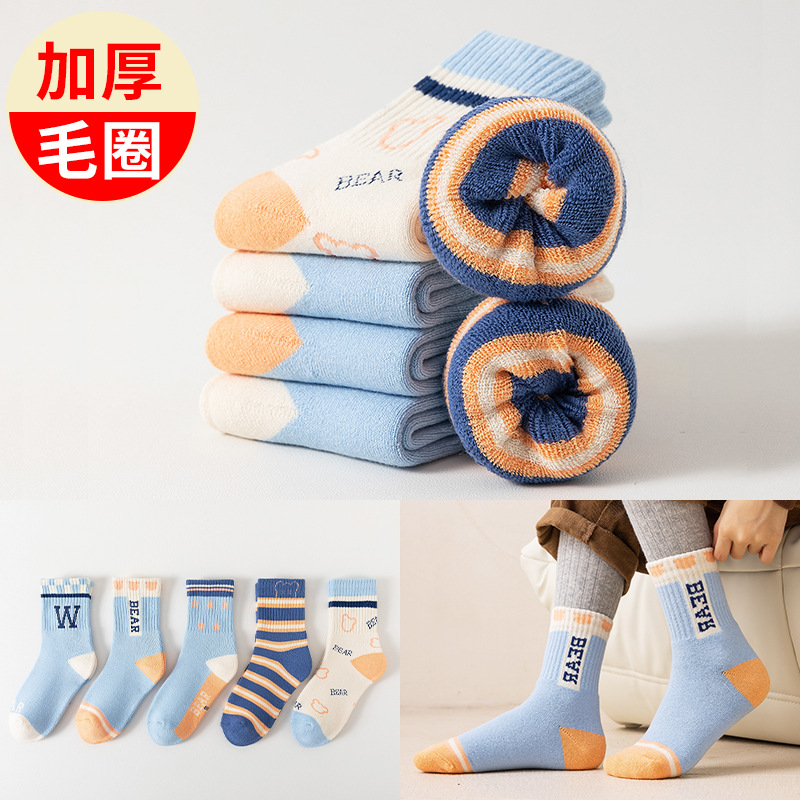 어린이 양말 가을과 겨울 기모 두꺼운 테리 양말 소년과 소녀 유행 양말 땀 흡수 따뜻한 스포츠 면화 양말 튜브 양말스토어 가기