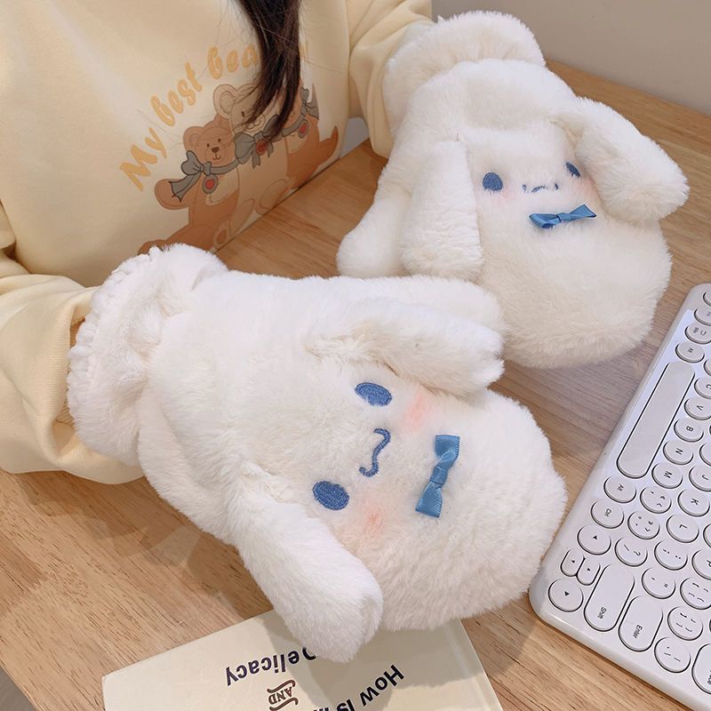 Yugui 개 장갑 귀여운 만화에 높은 찾고 학생 겨울 타고 따뜻한 기모 플러시 올 인 클루 시브 손가락스토어 가기