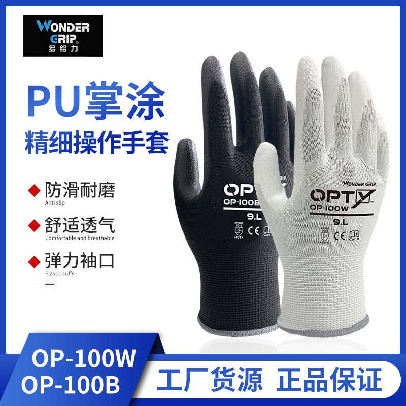 멀티 포스 OP-100W PU 팜 장갑 산업 통기성 건물 미끄럼 방지 내마모성 노동 장갑 도매스토어 가기