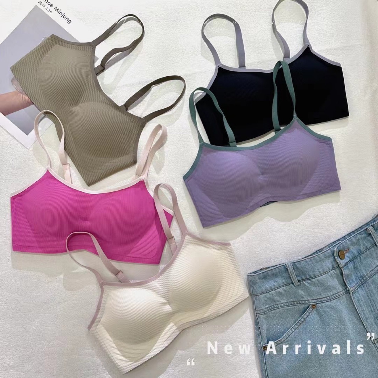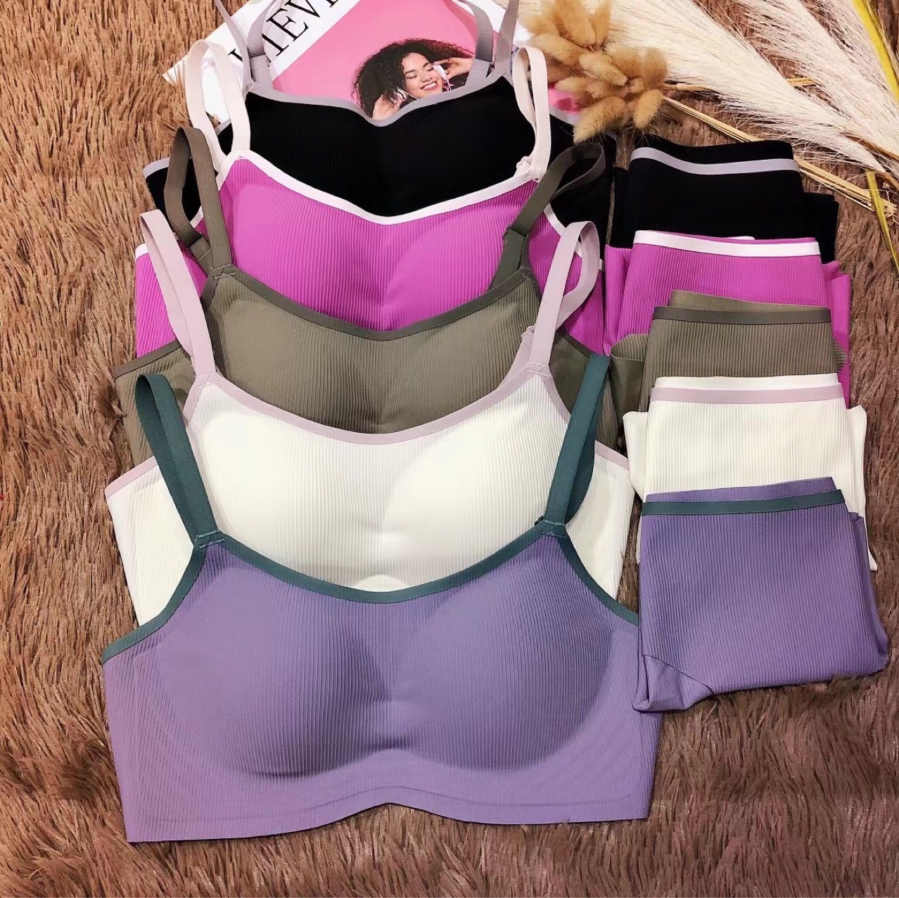 A19 새로운 스타일 어퍼 씬 더 낮은 두꺼운 트레이스리스 스트랩리스 브라 스레드 편안한 무테 없는 모임 여성용 속옷 세트스토어 가기
