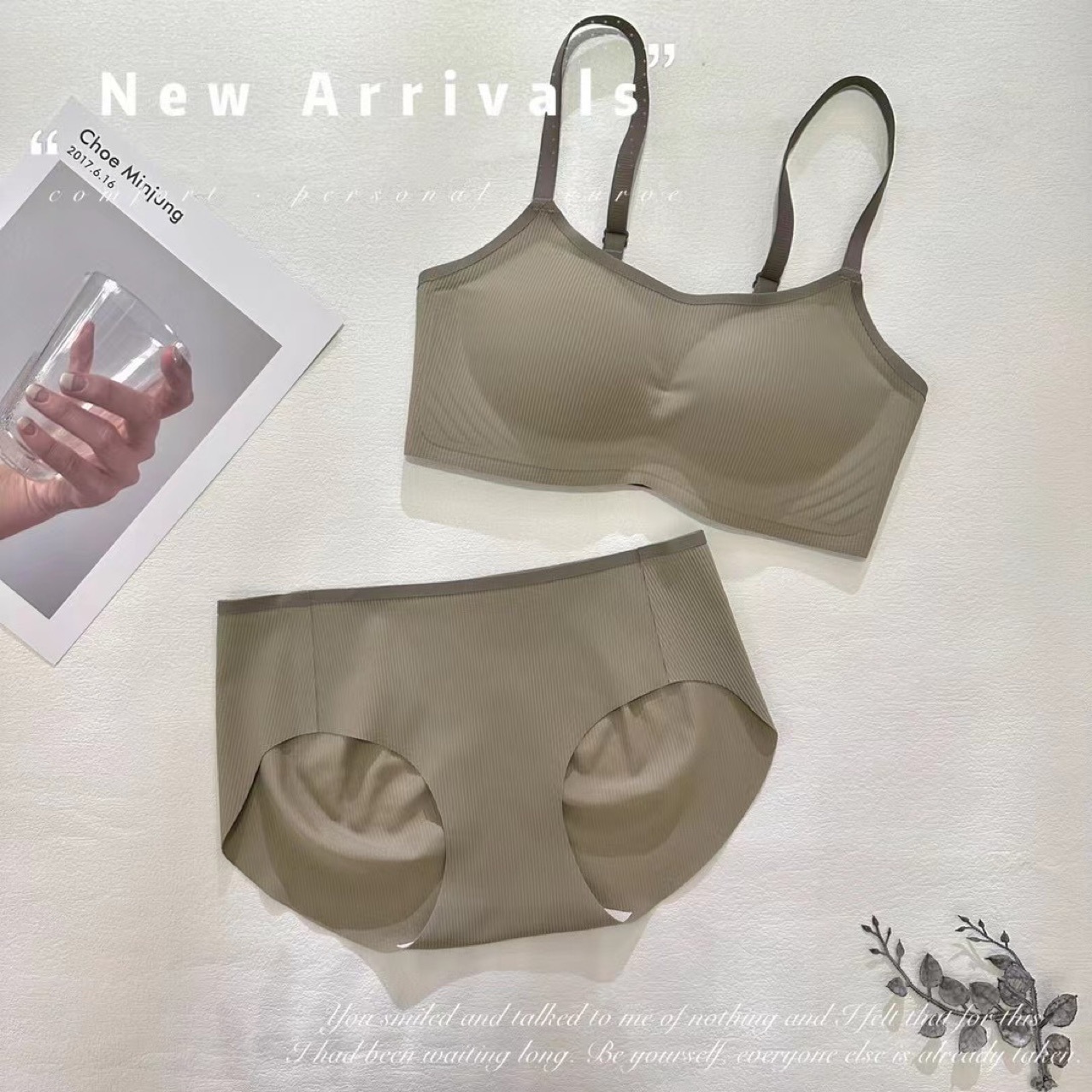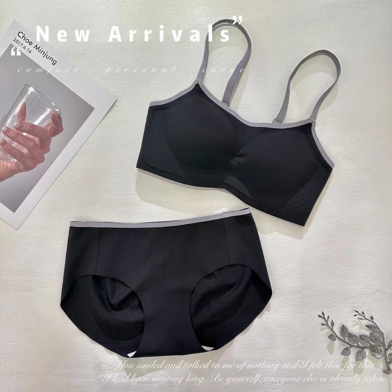 A19 새로운 스타일 어퍼 씬 더 낮은 두꺼운 트레이스리스 스트랩리스 브라 스레드 편안한 무테 없는 모임 여성용 속옷 세트