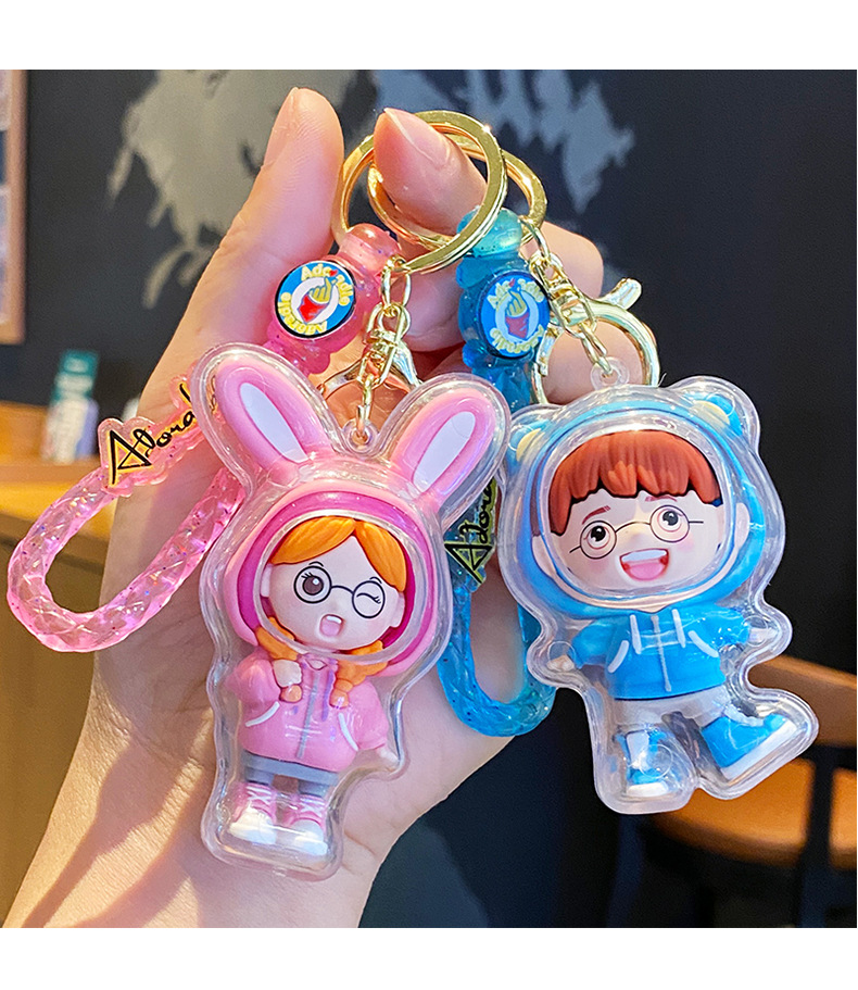 귀여운 소년 소녀 커플 열쇠 고리 여자의 절묘한 만화 어린이 학교 가방 펜던트 자동차 열쇠 고리 작은 보석스토어 가기