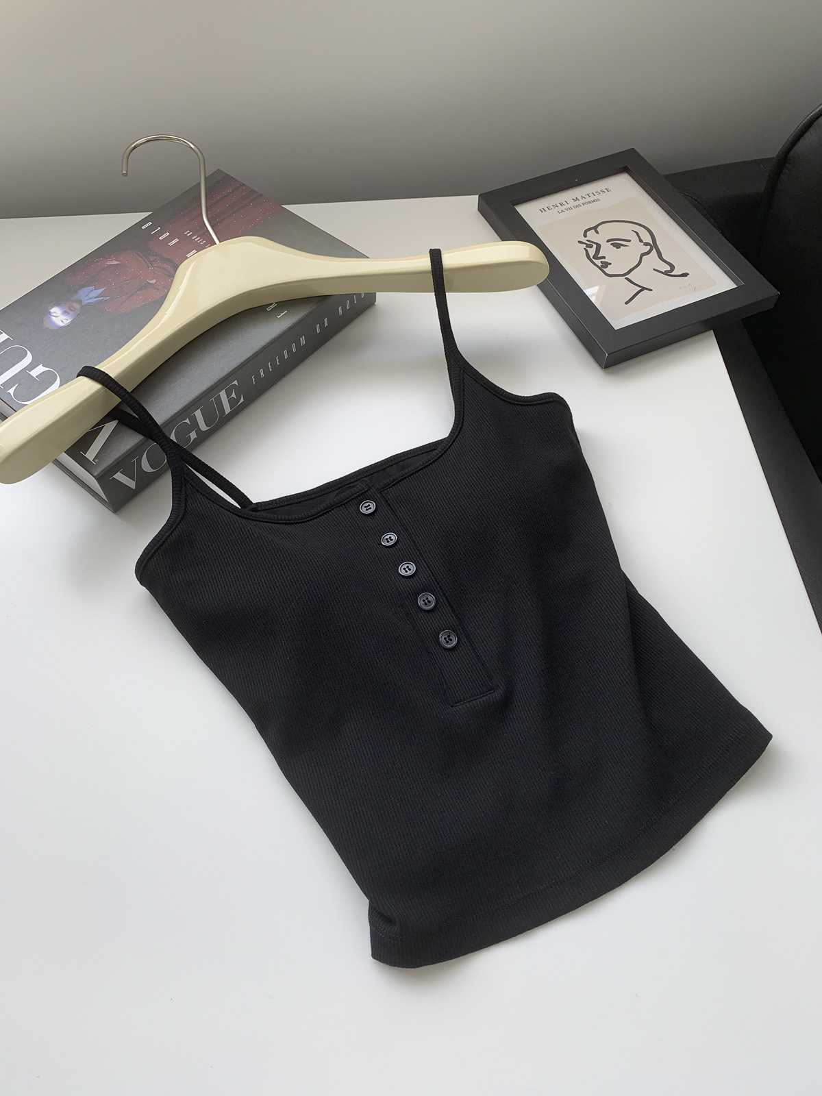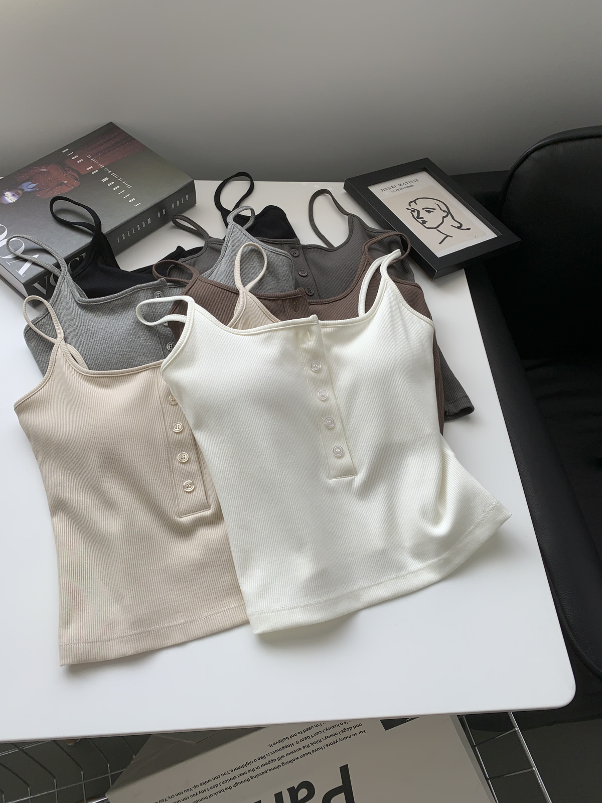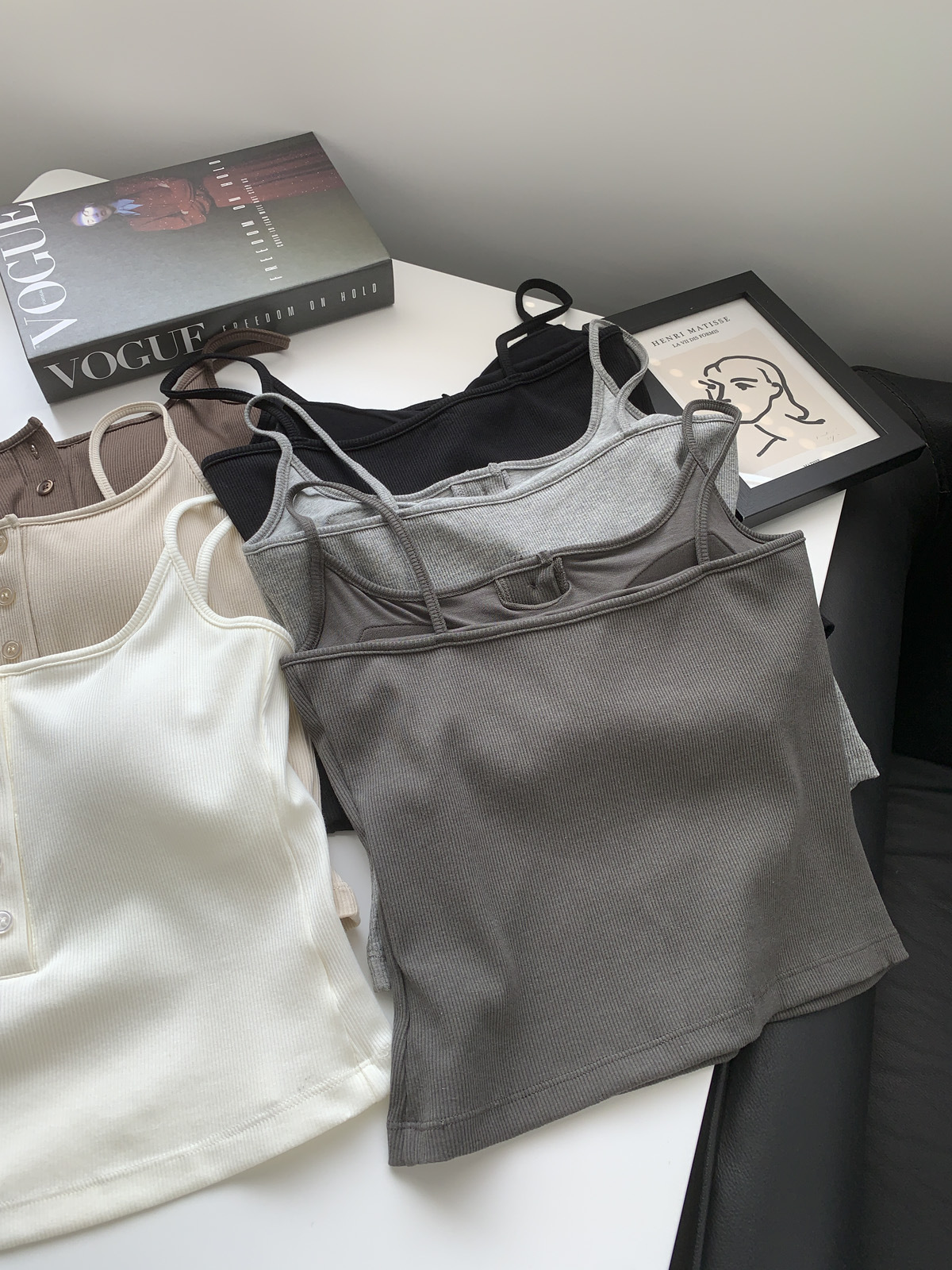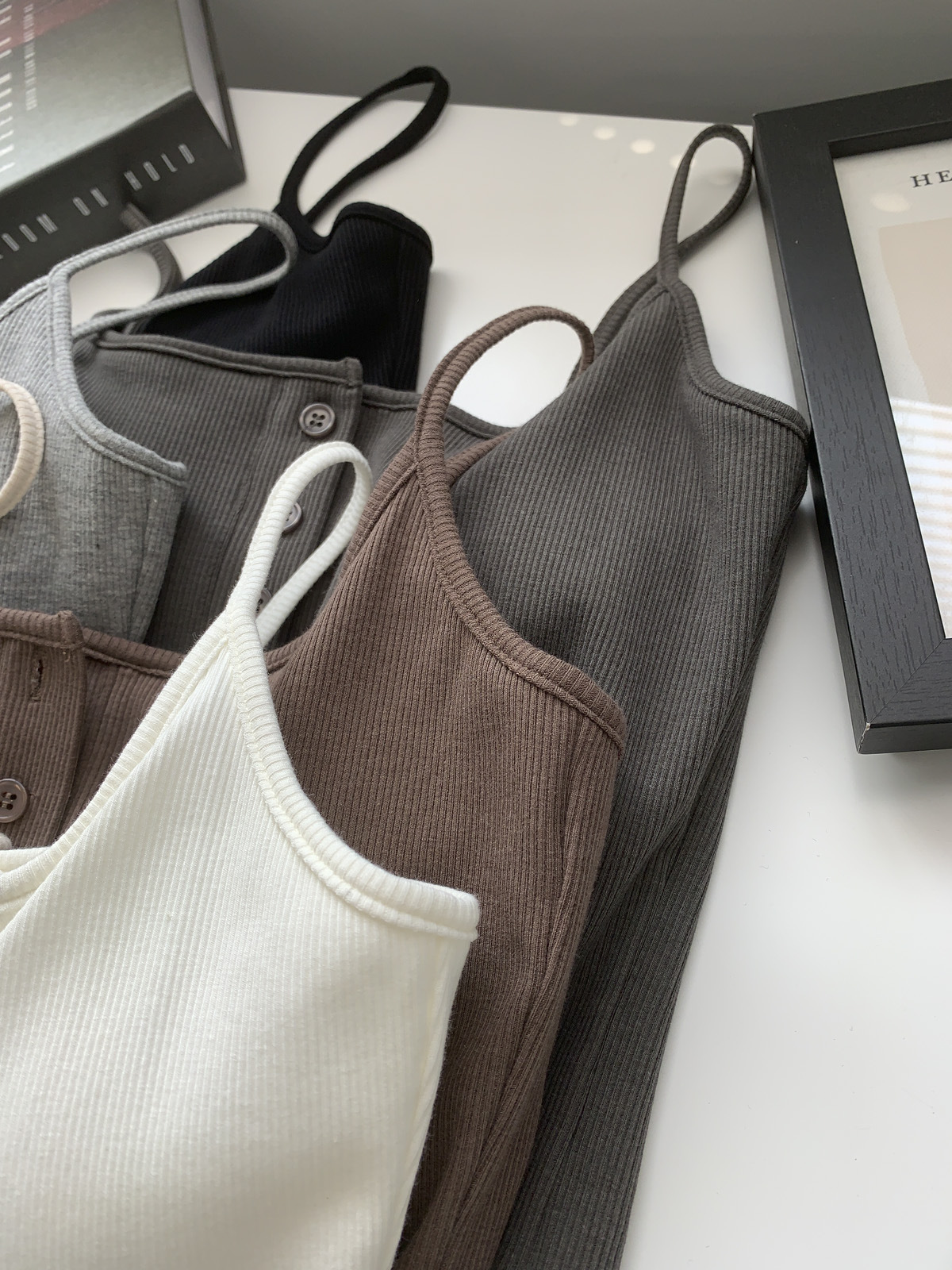 새로운 스타일 1 자 어깨 벨트 가슴 패드 레이온 조끼 여성용 디자인 센스 스퀘어 넥 스레드 캐미솔 조끼 슬림핏 아우터웨어 베이스스토어 가기