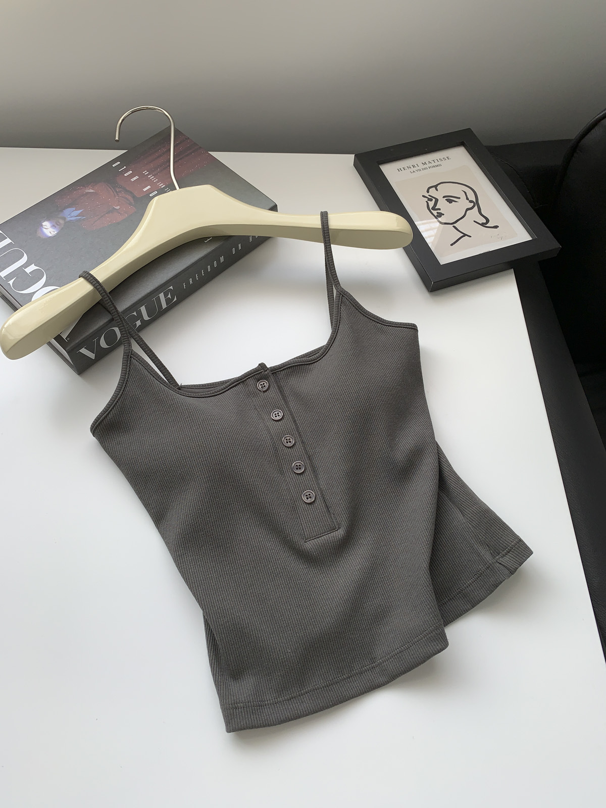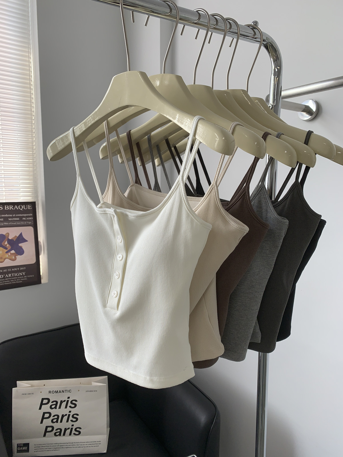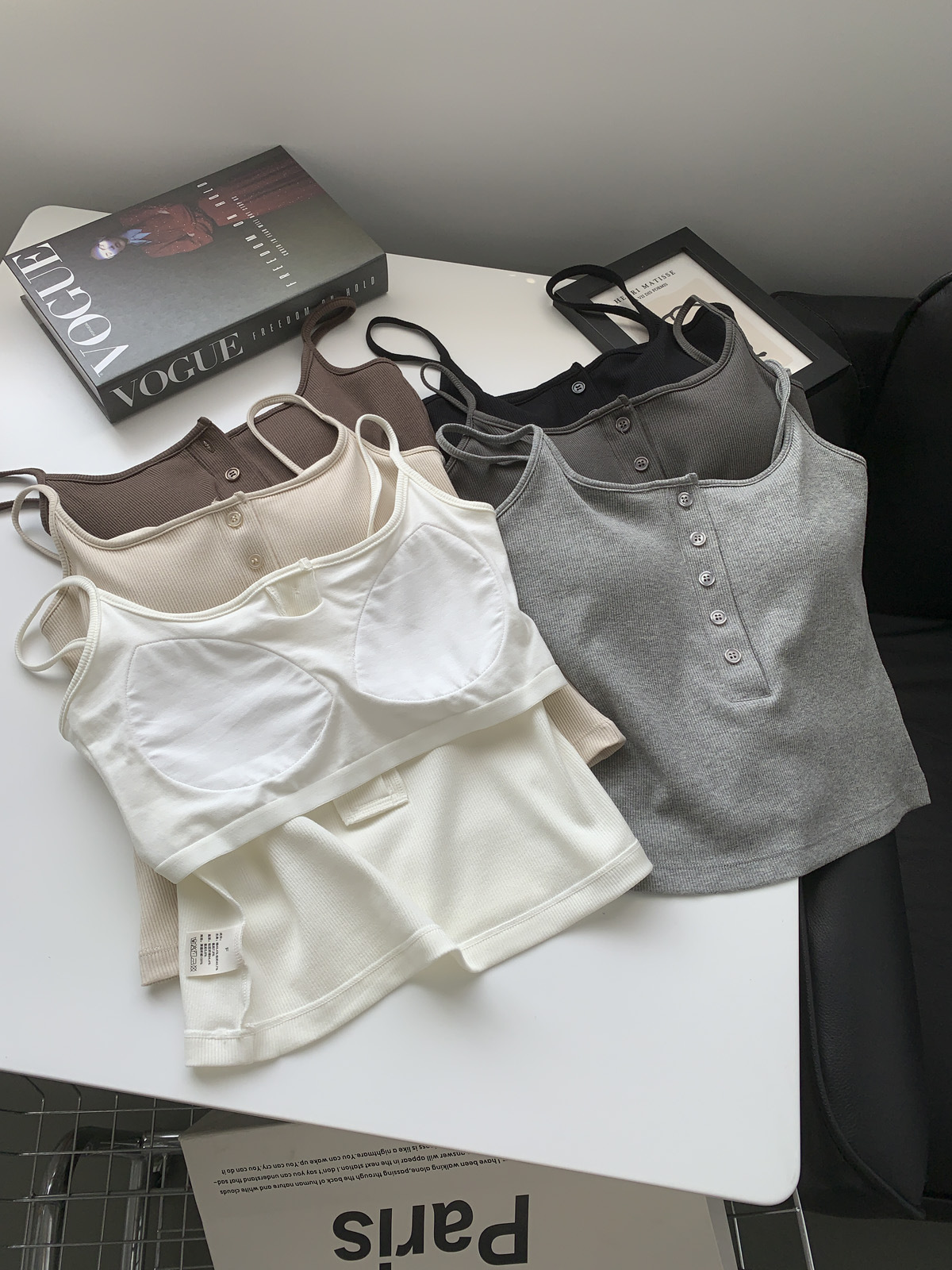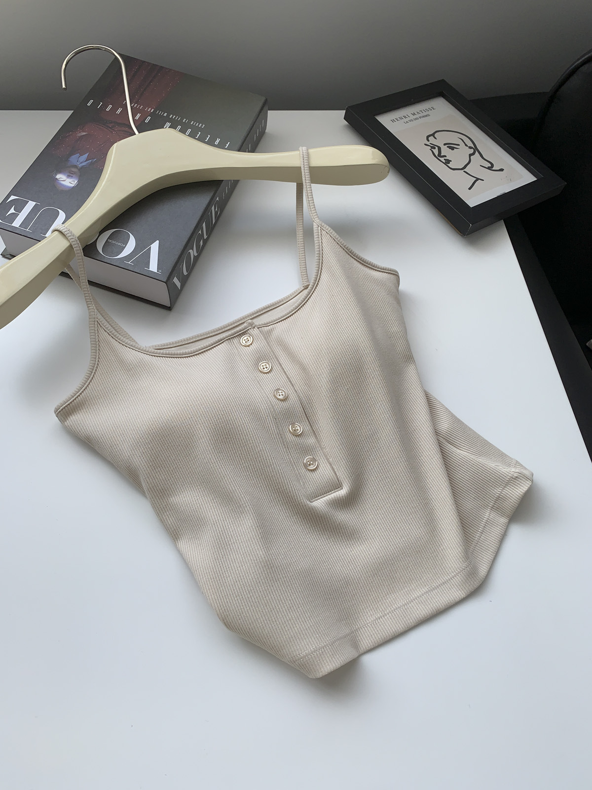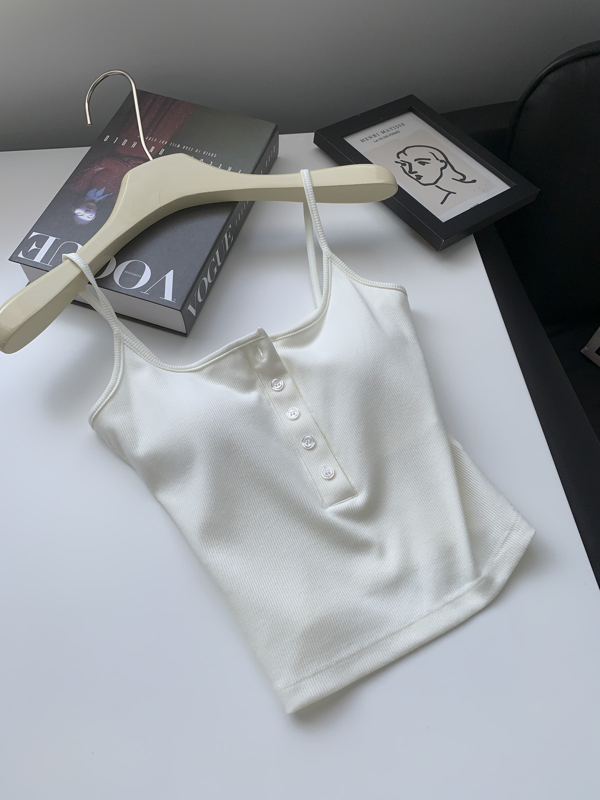 새로운 스타일 1 자 어깨 벨트 가슴 패드 레이온 조끼 여성용 디자인 센스 스퀘어 넥 스레드 캐미솔 조끼 슬림핏 아우터웨어 베이스스토어 가기