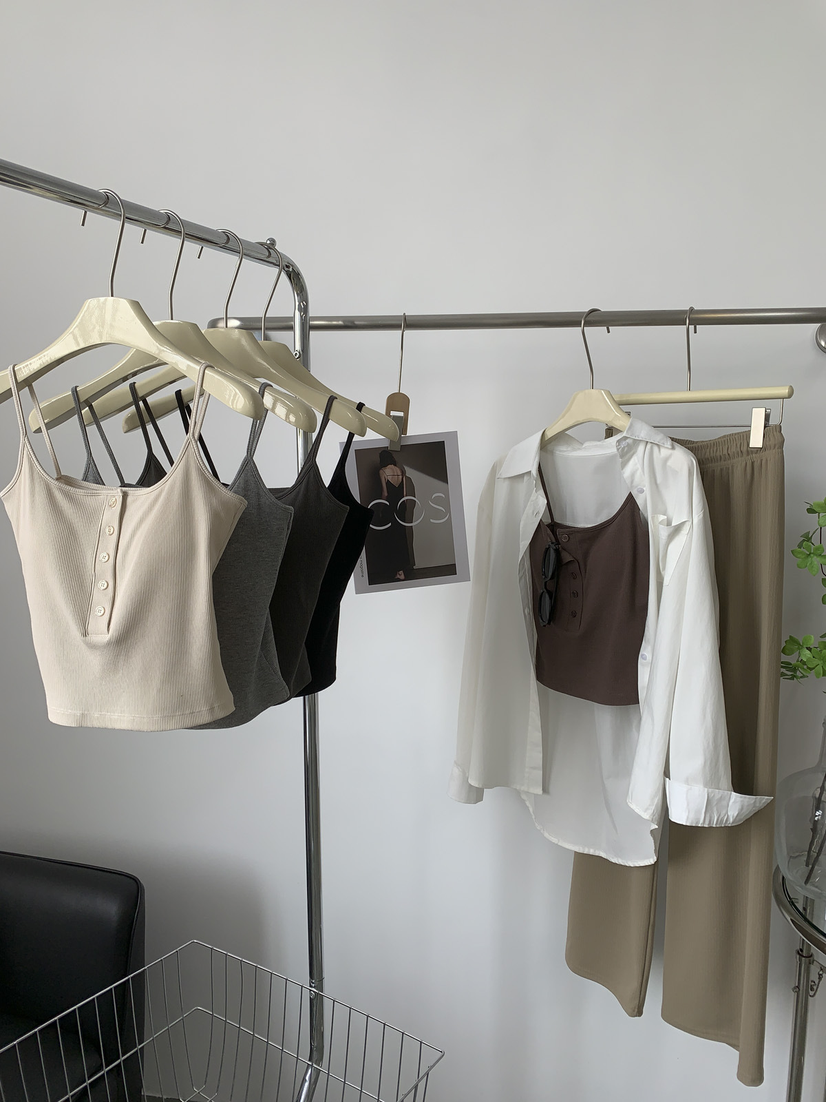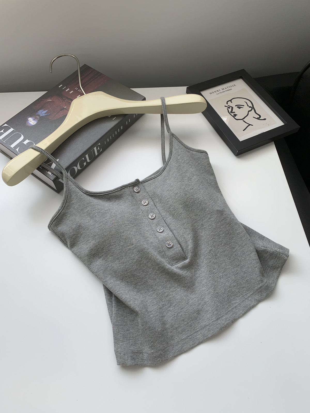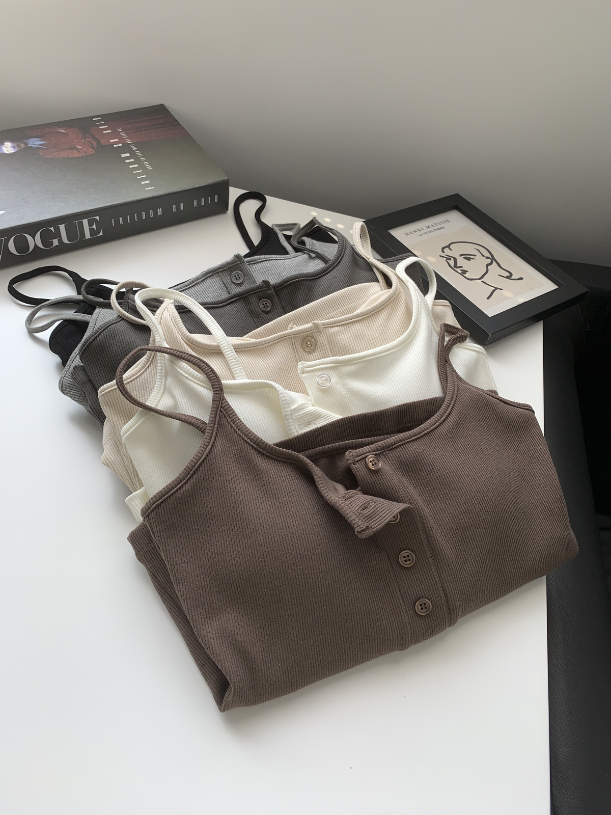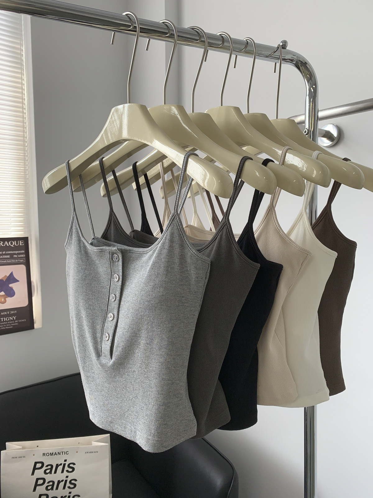 새로운 스타일 1 자 어깨 벨트 가슴 패드 레이온 조끼 여성용 디자인 센스 스퀘어 넥 스레드 캐미솔 조끼 슬림핏 아우터웨어 베이스스토어 가기