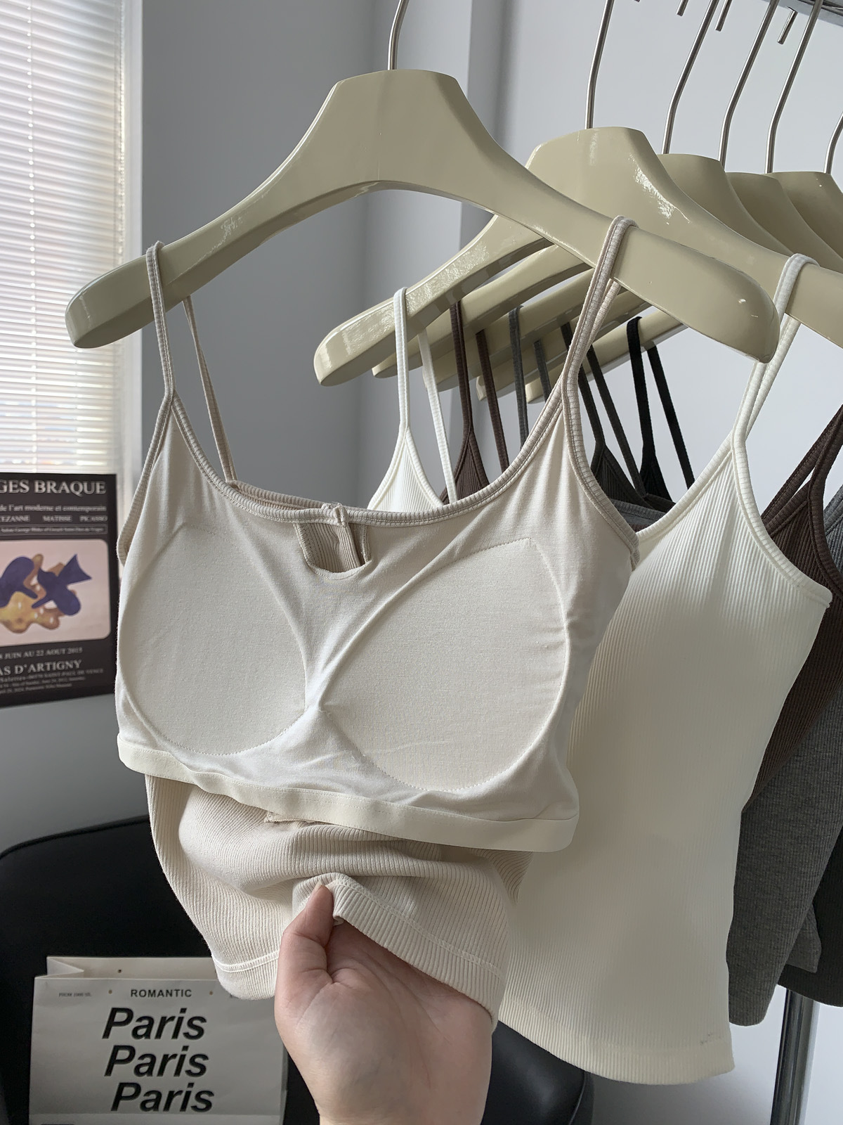 새로운 스타일 1 자 어깨 벨트 가슴 패드 레이온 조끼 여성용 디자인 센스 스퀘어 넥 스레드 캐미솔 조끼 슬림핏 아우터웨어 베이스
