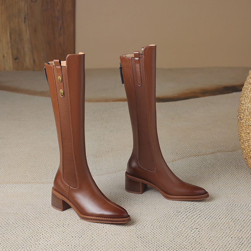 2023 가을과 겨울 새로운 연기 튜브 탄성 부츠 긴 부츠 두꺼운 뒤꿈치 패션 부츠 높지만 무릎이 뾰족한 여성 부츠 나이트 부츠스토어 가기