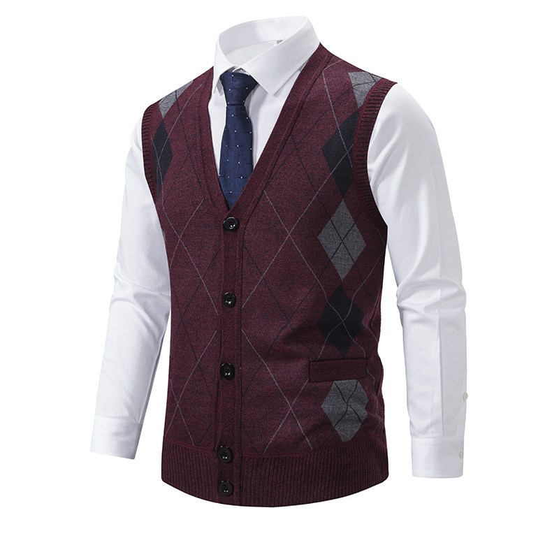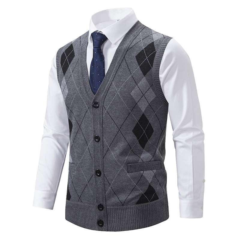 가을과 겨울 남성 중년 및 노인 조끼 조끼 조끼 조끼 V-넥 캐시미어 니트 두꺼운 크로스 보더 심플 니트 조끼 남성용스토어 가기