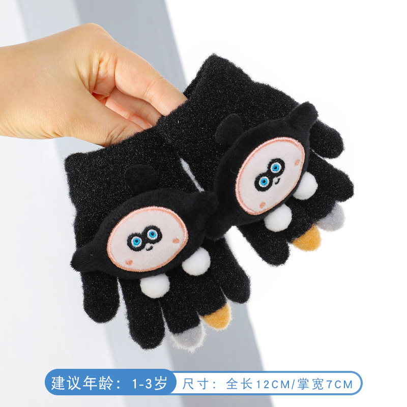 어린이 다섯 손가락 장갑, 겨울 따뜻한 장갑, 소년 소녀용, 중대형 어린이 만화 플러시 두꺼운 동결 방지 장갑