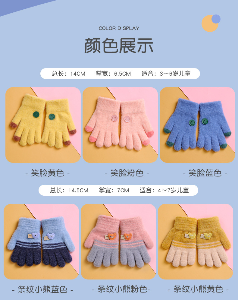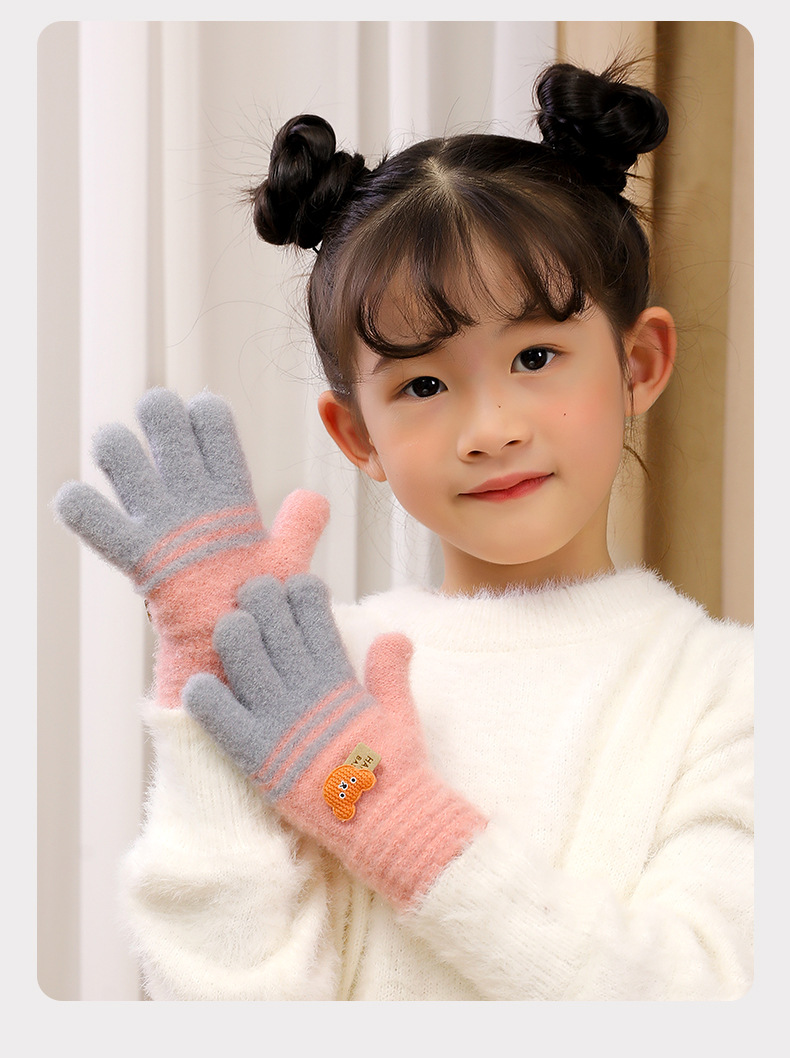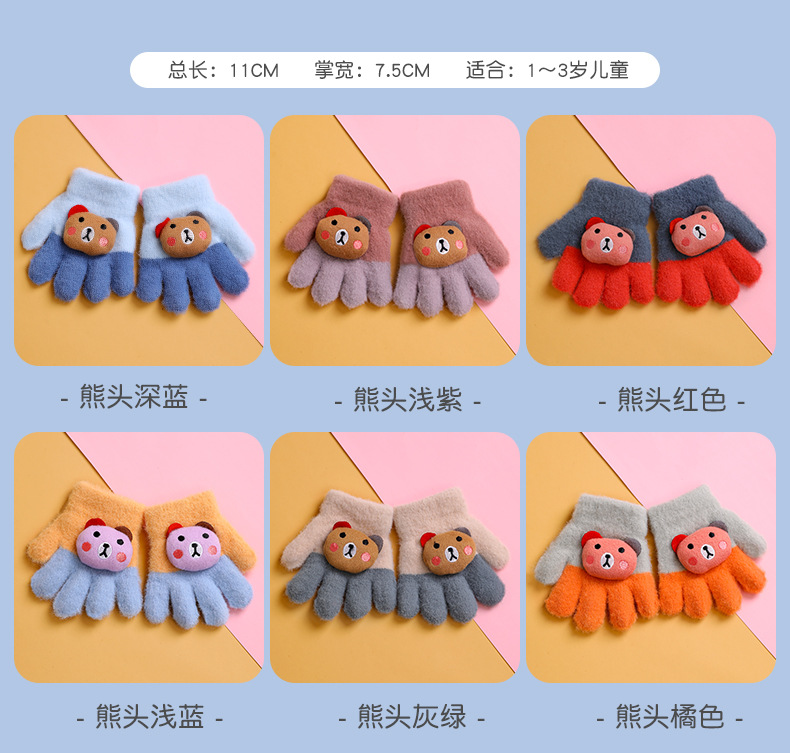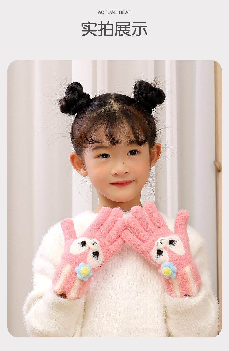 어린이 다섯 손가락 장갑, 겨울 따뜻한 장갑, 소년 소녀용, 중대형 어린이 만화 플러시 두꺼운 동결 방지 장갑스토어 가기