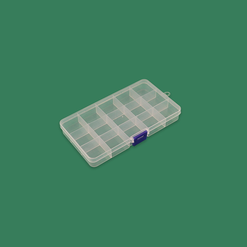 블루 버클 고정 15 그리드 슬롯 투명 플라스틱 저장 상자 구슬 네일 조각 하드웨어 도구 보석 낚시 기어 PP 상자스토어 가기
