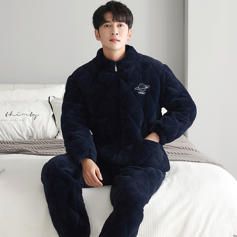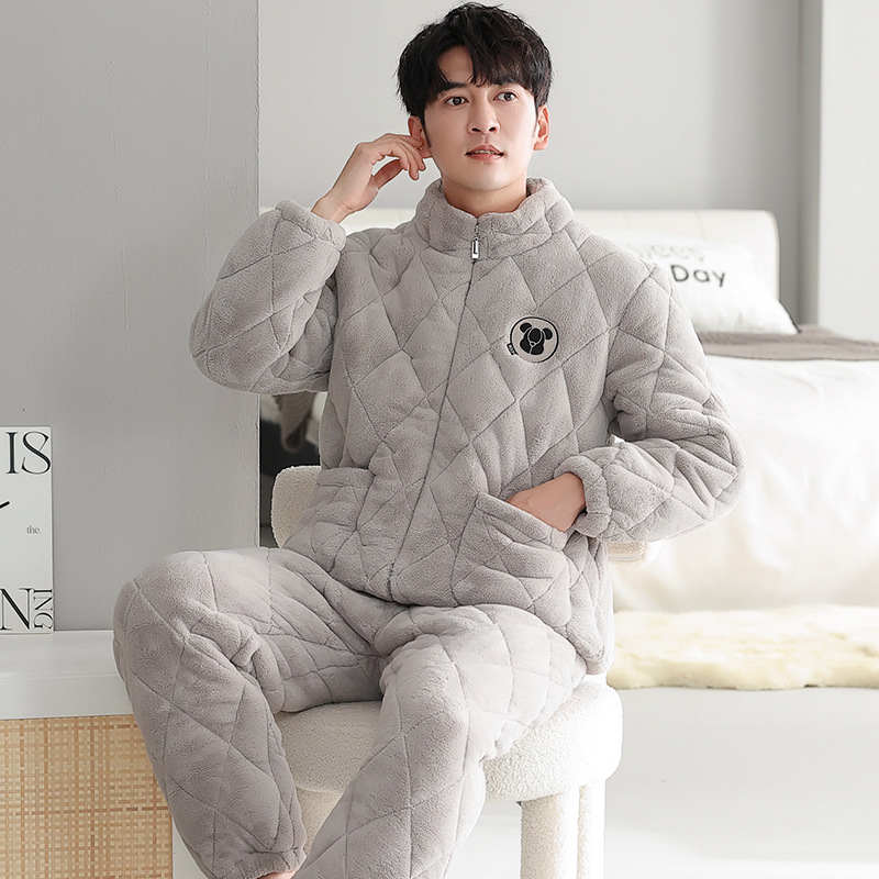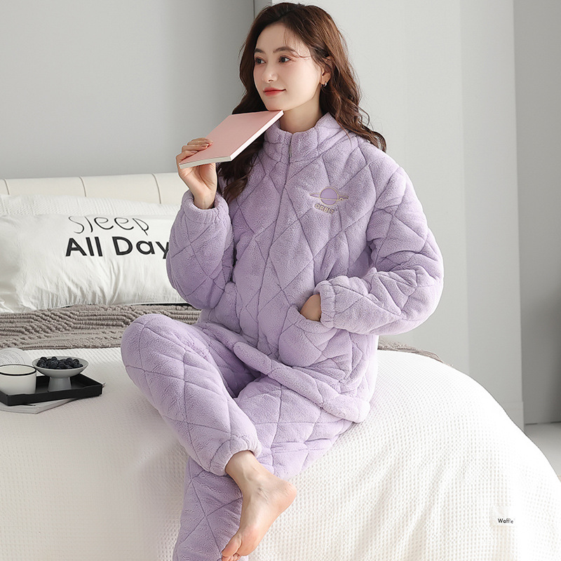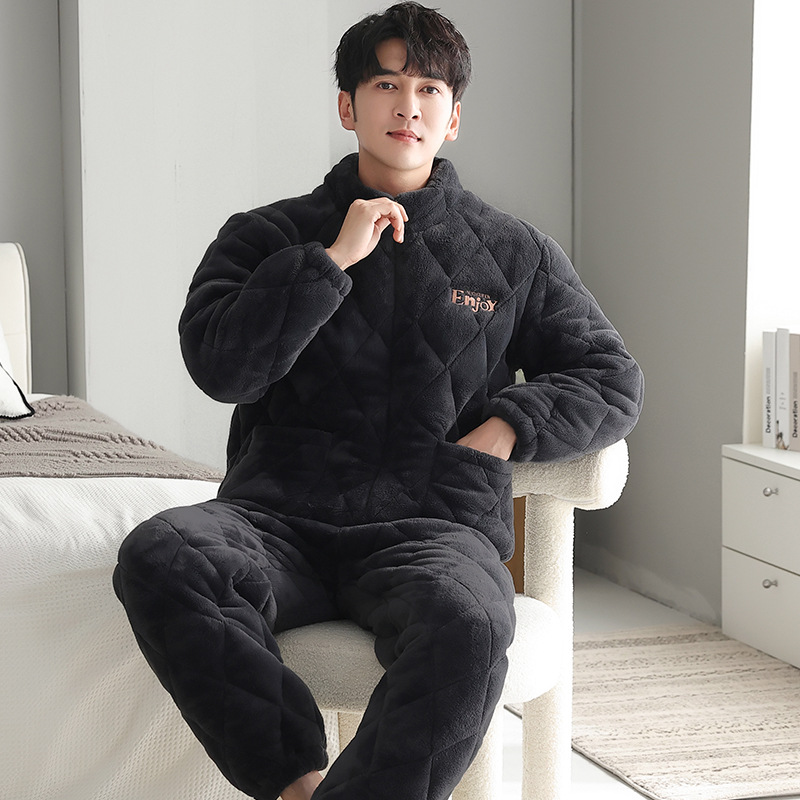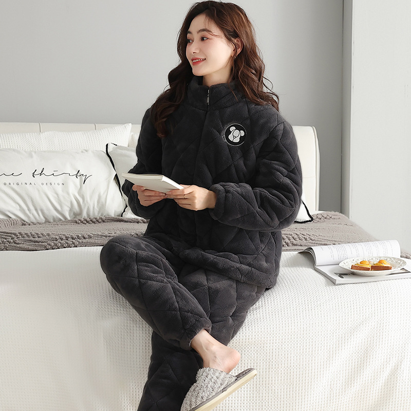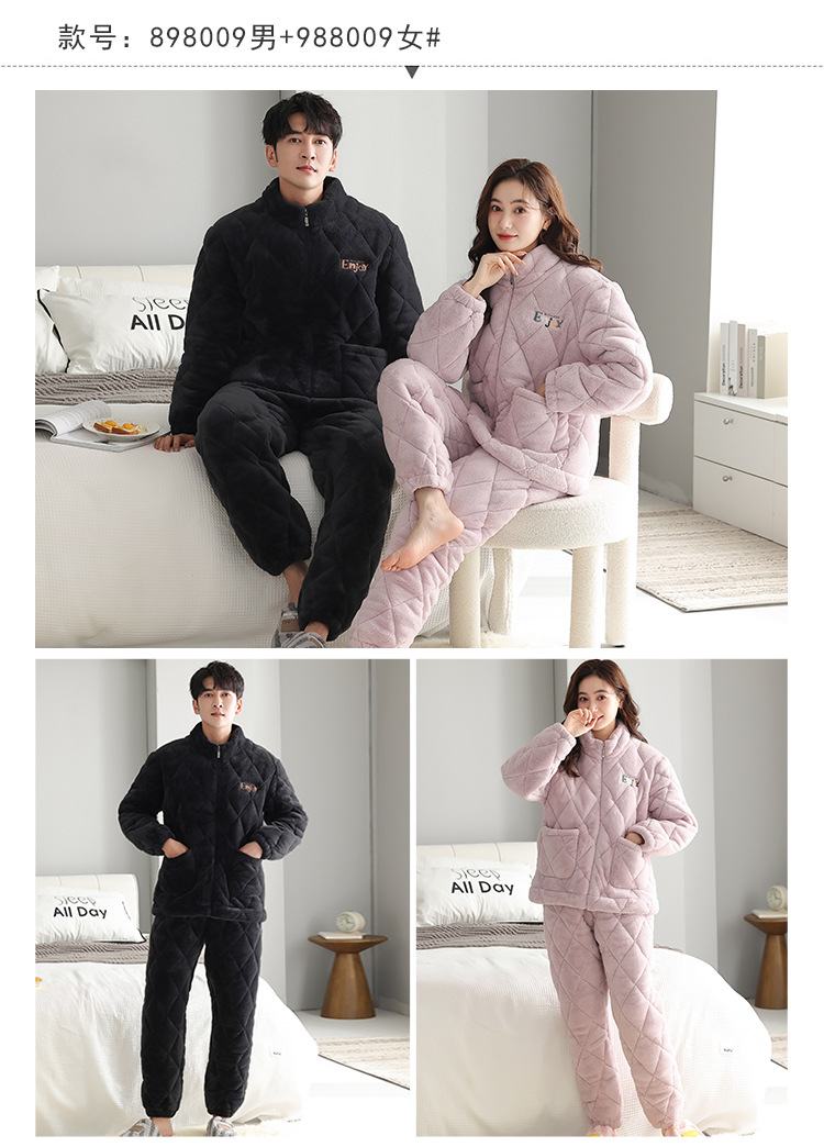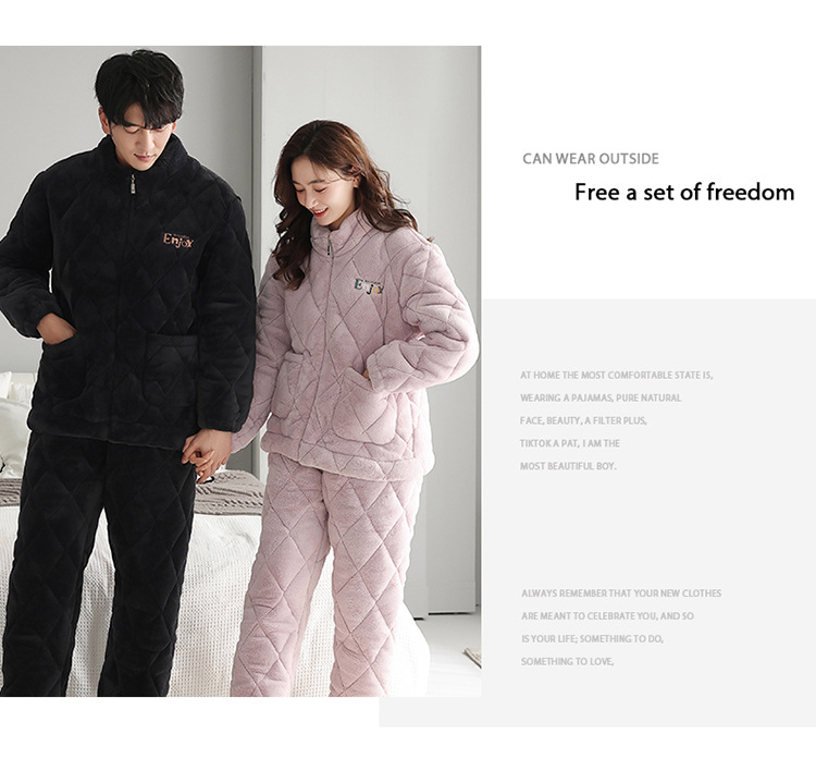 겨울 커플 잠옷 여자의 3 층 면 두꺼운 기모 겨울 새로운 따뜻한 남자와 여자의 지퍼 가정 옷 세트