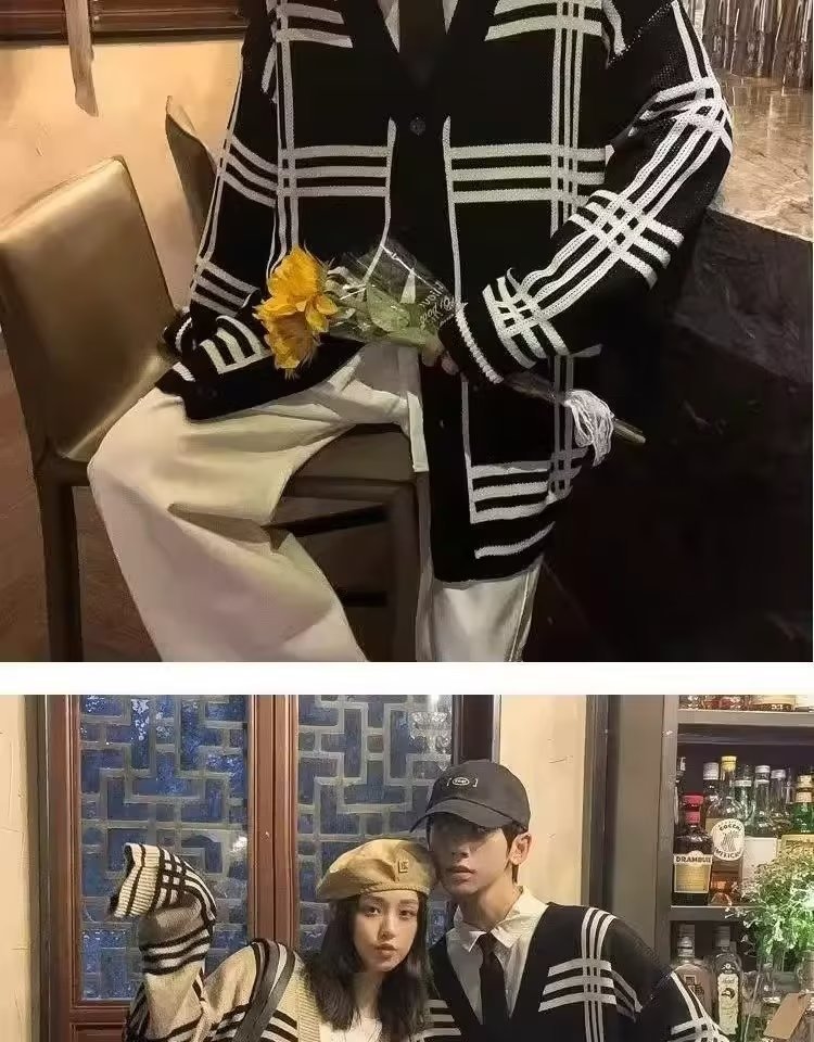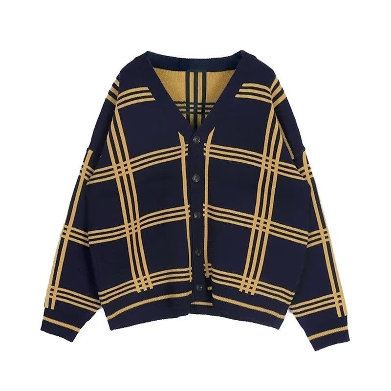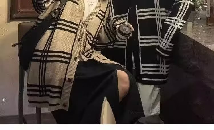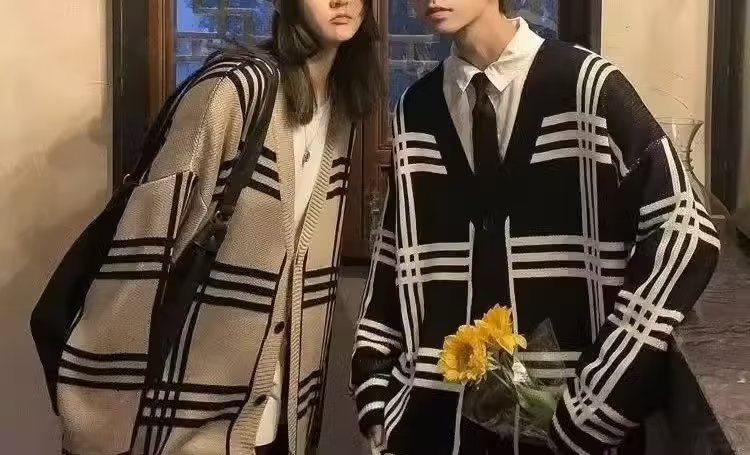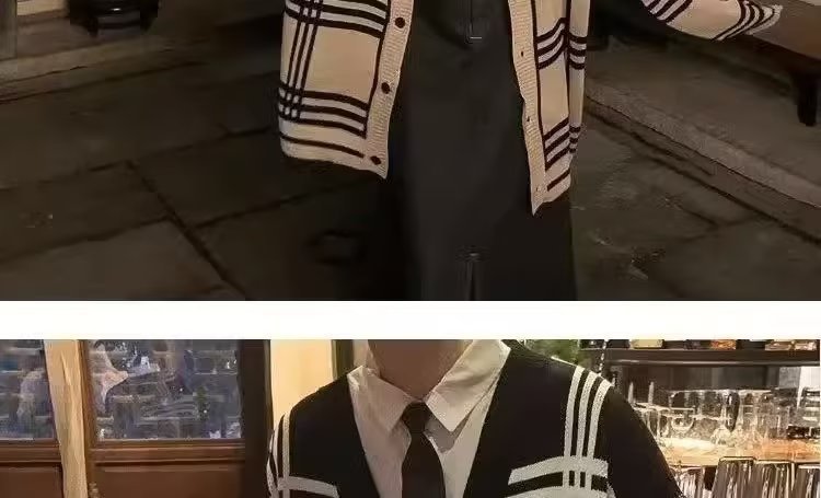 일본 복고풍 V-넥 카디건 스웨터 남성과 여성의 가을과 겨울 게으른 스타일 느슨한 캐주얼 니트 스웨터 모든 매치 트렌디 브랜드스토어 가기