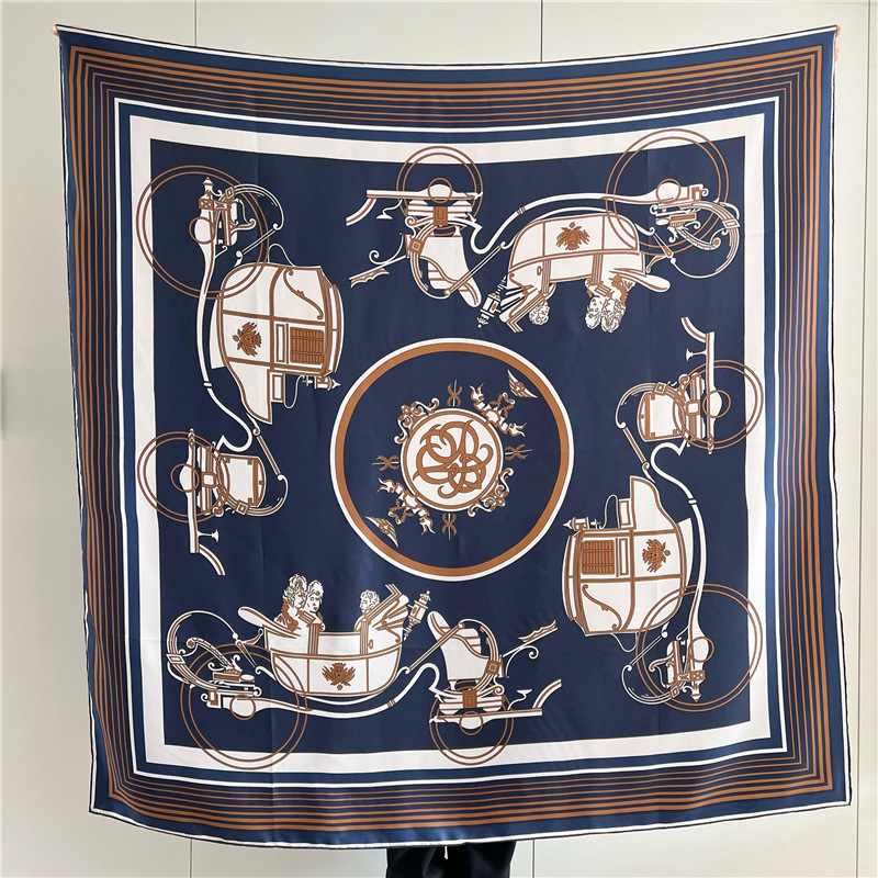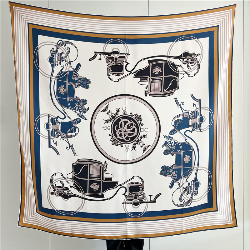 트윌 실크 스카프 여성용 클래식 캐리지 봄과 여름 새로운 뽕나무 실크 대형 스퀘어 스카프 여행용 대형 숄 스카프 이중 사용