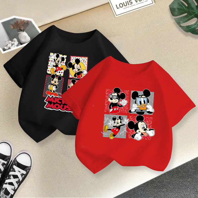 • 블랙 레드 격자 무늬 미키 마우스 반팔