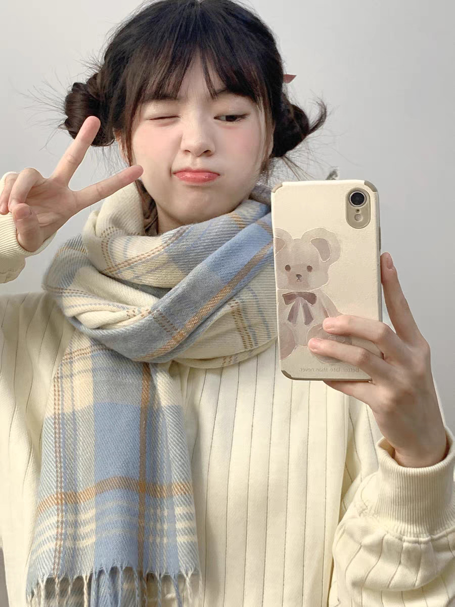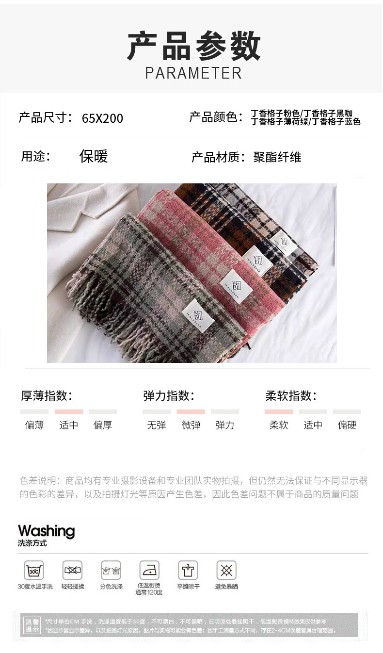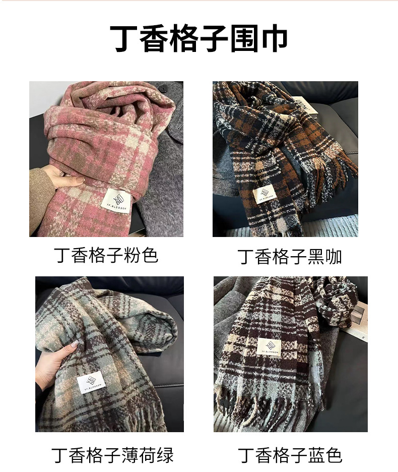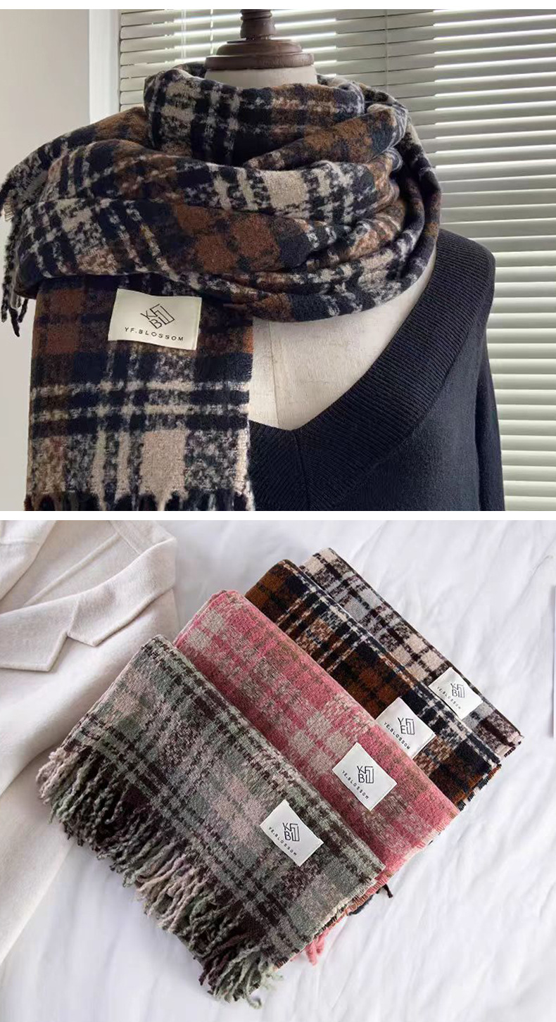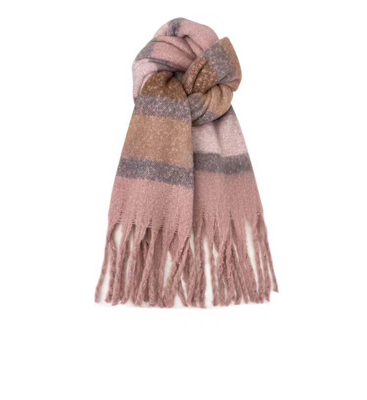 격자 무늬 스카프 여성 한국 스타일 따뜻한 신제품 드라이 로즈 핑크 가을, 겨울 미백 부드러운 술 목도리 스카프스토어 가기