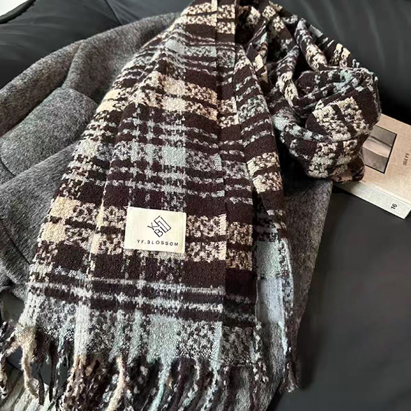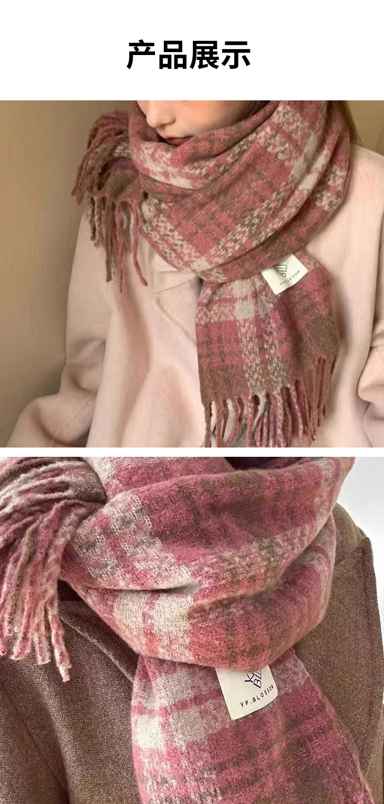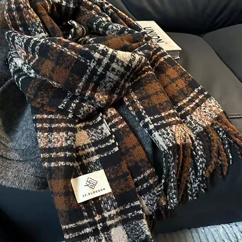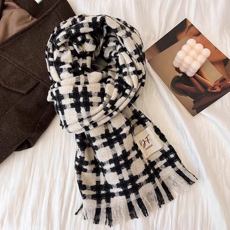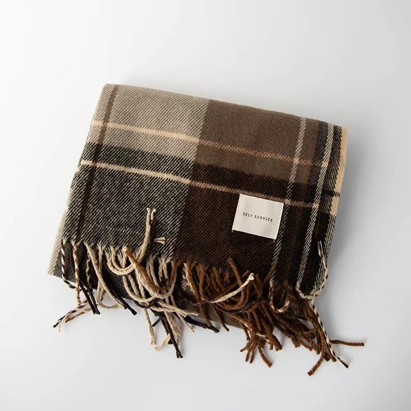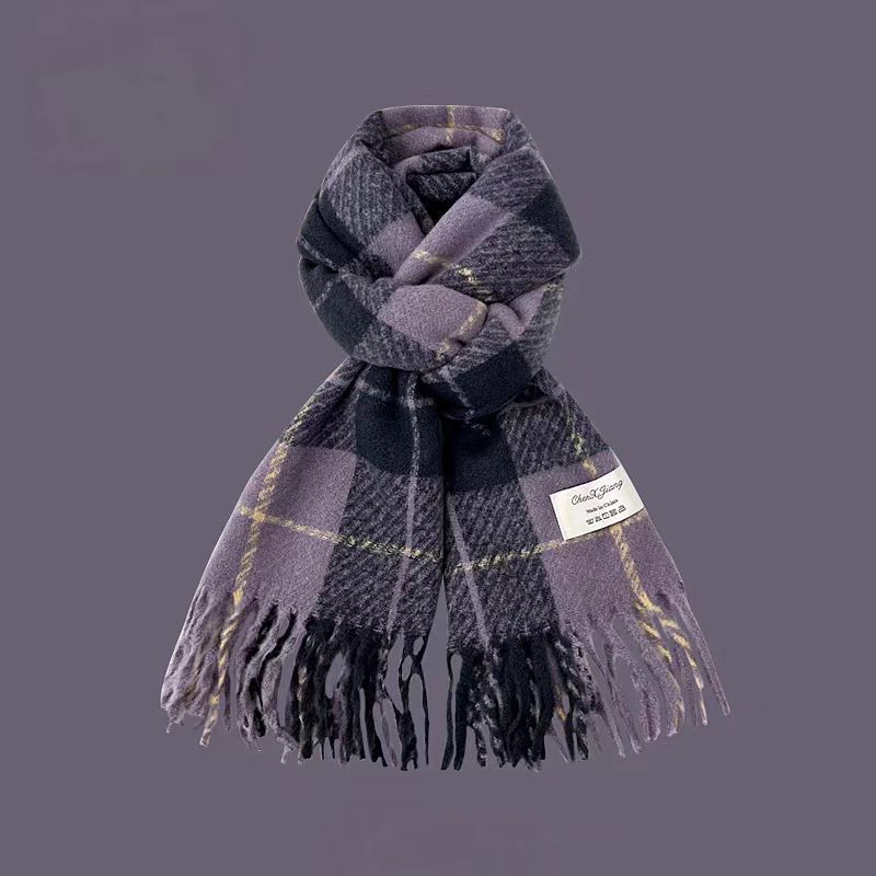 격자 무늬 스카프 여성 한국 스타일 따뜻한 신제품 드라이 로즈 핑크 가을, 겨울 미백 부드러운 술 목도리 스카프스토어 가기
