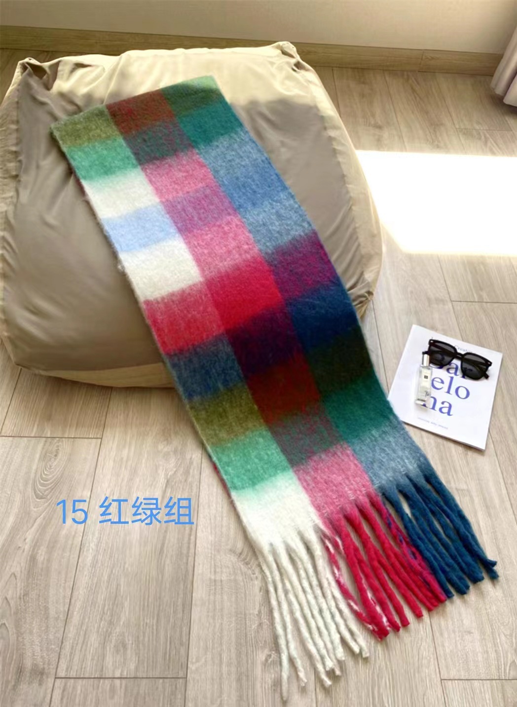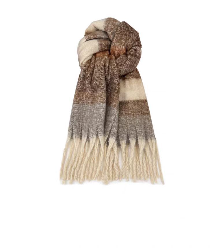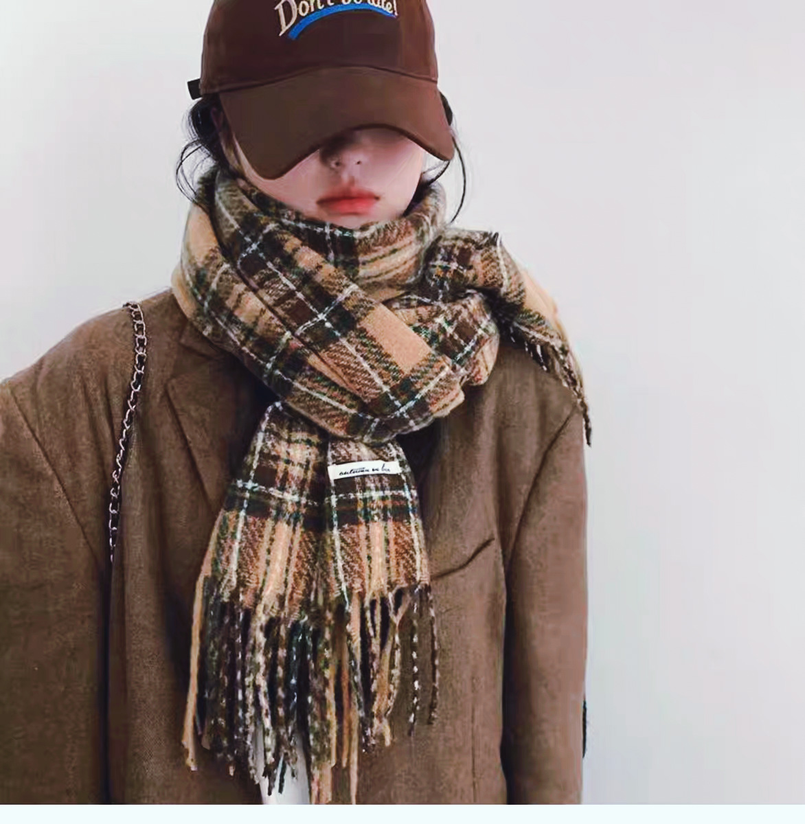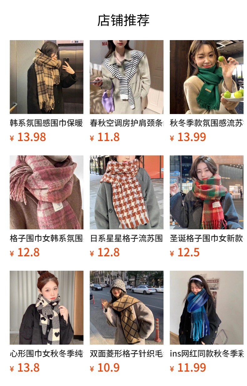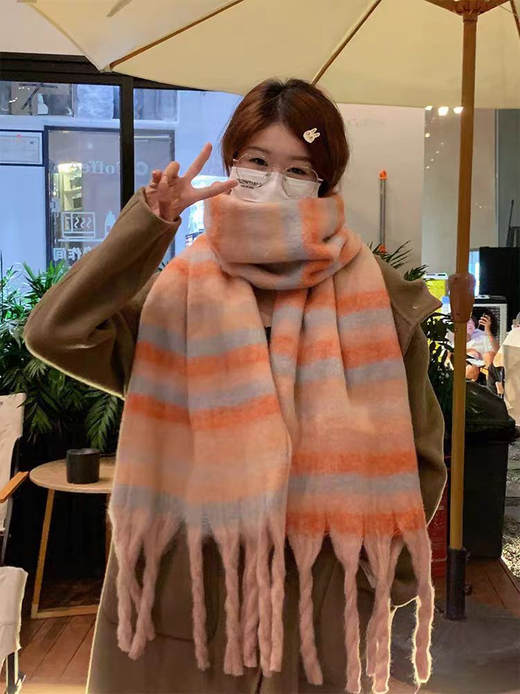 격자 무늬 스카프 여성 한국 스타일 따뜻한 신제품 드라이 로즈 핑크 가을, 겨울 미백 부드러운 술 목도리 스카프스토어 가기
