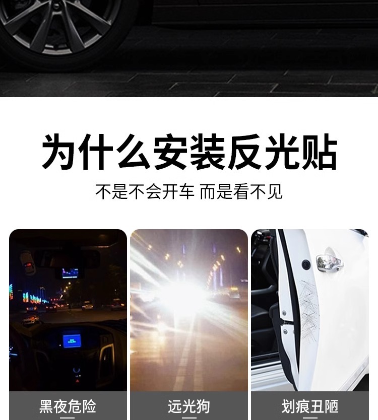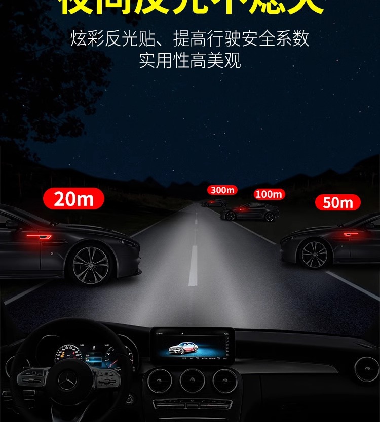 자동차 경고 반사 스티커 도어 충돌 방지 고무 스트립 빛나는 신체 성격 수정 휠 눈썹 펜더 장식 자동차 스티커스토어 가기