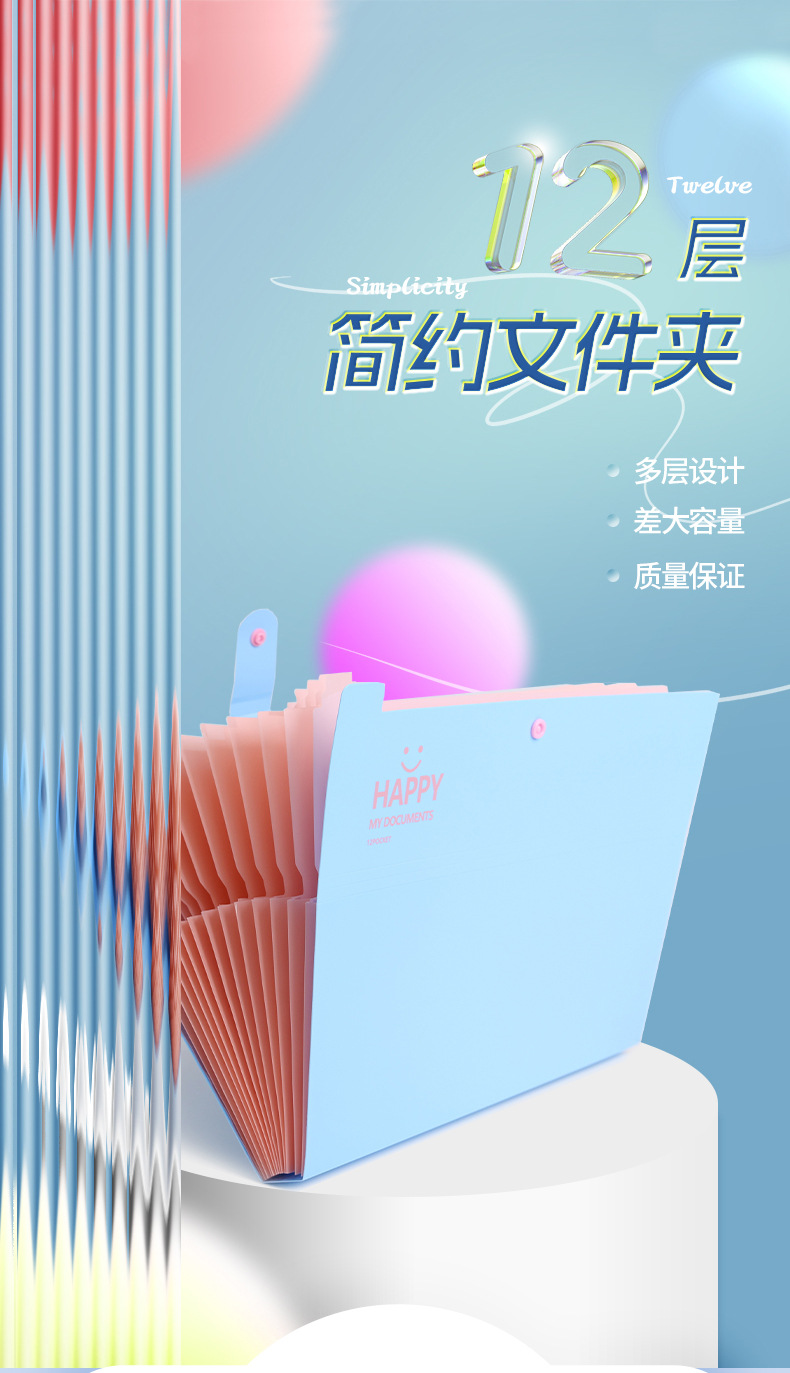 새로운 폭발성 보관 가방에 12 개, 웃는 얼굴 pp 폴더 테스트 종이 오르간 가방 다층 금융 휴대용 폴더