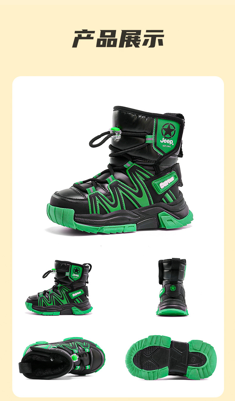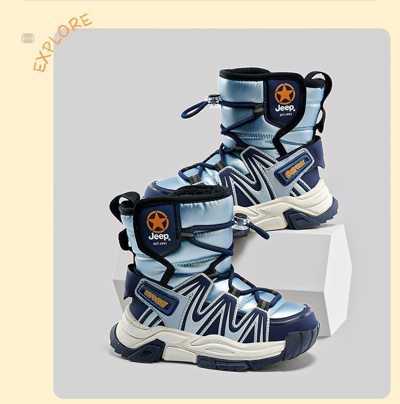 지프 어린이 겨울 스노우 부츠 방수 소년 면화 신발 Northeast 대형 면화 소년 두꺼운 벨벳 부츠 2025 새로운 스타일스토어 가기