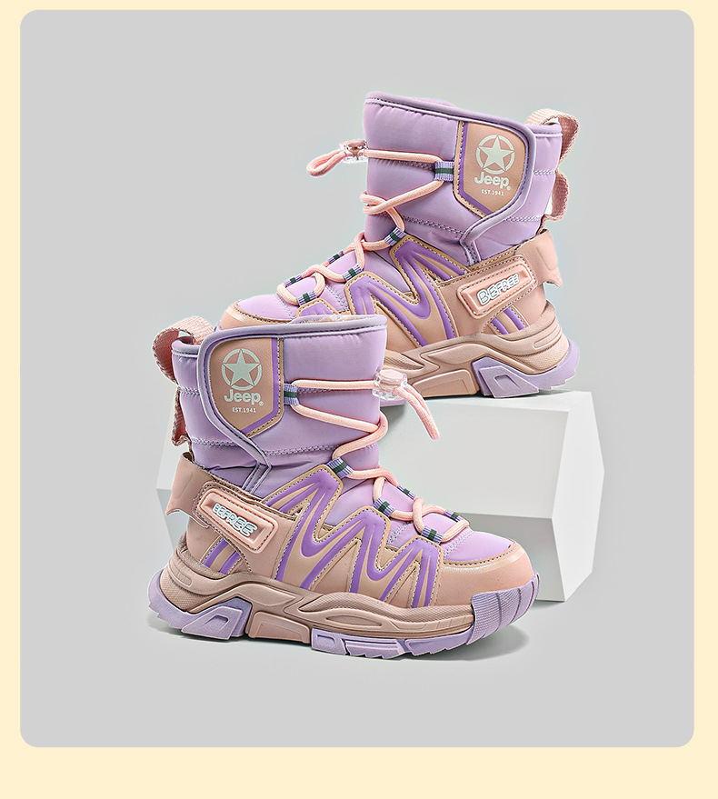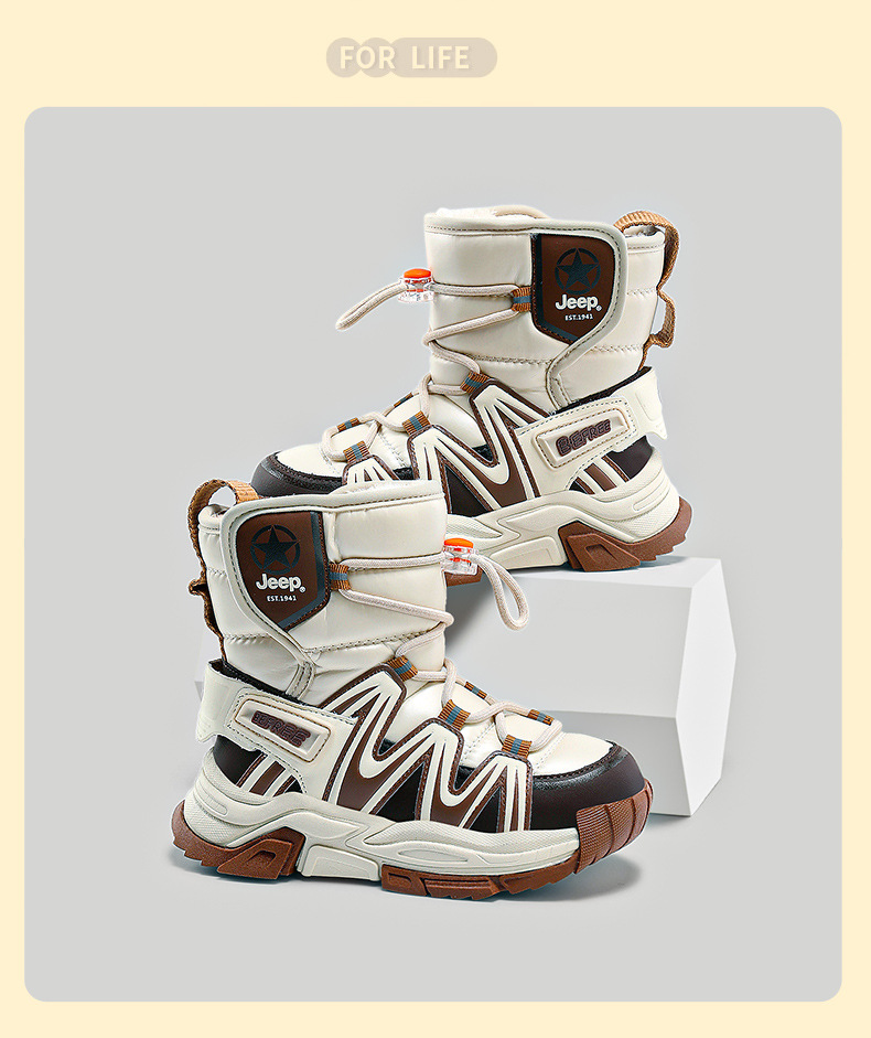 지프 어린이 겨울 스노우 부츠 방수 소년 면화 신발 Northeast 대형 면화 소년 두꺼운 벨벳 부츠 2025 새로운 스타일