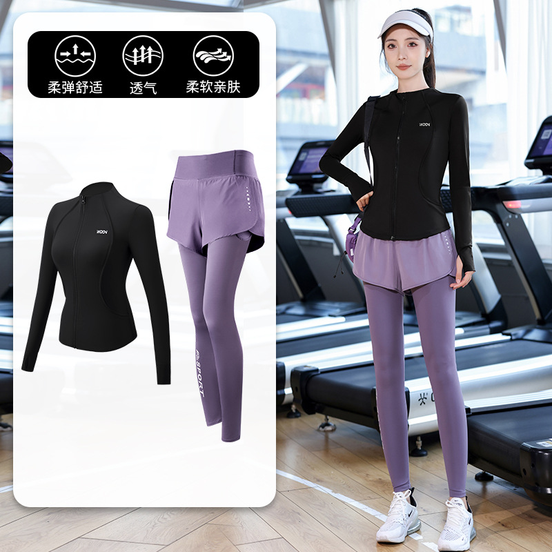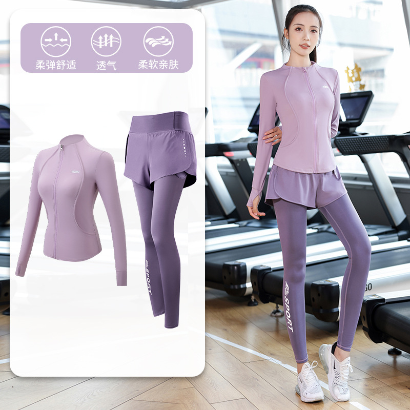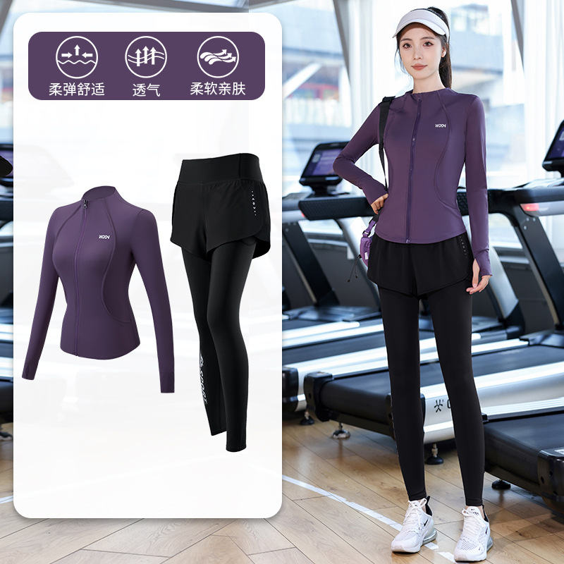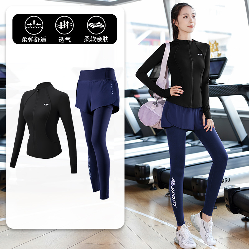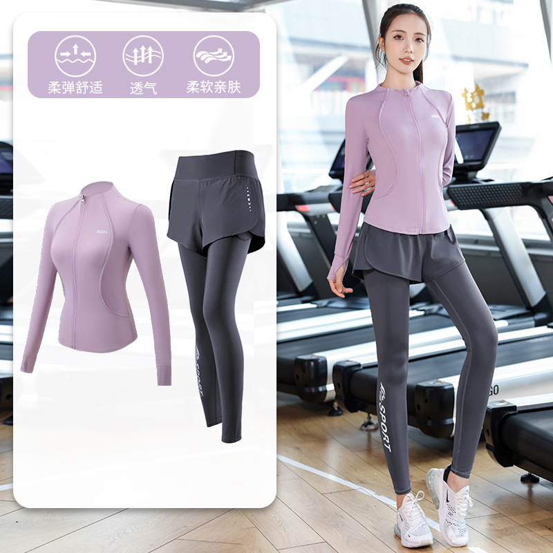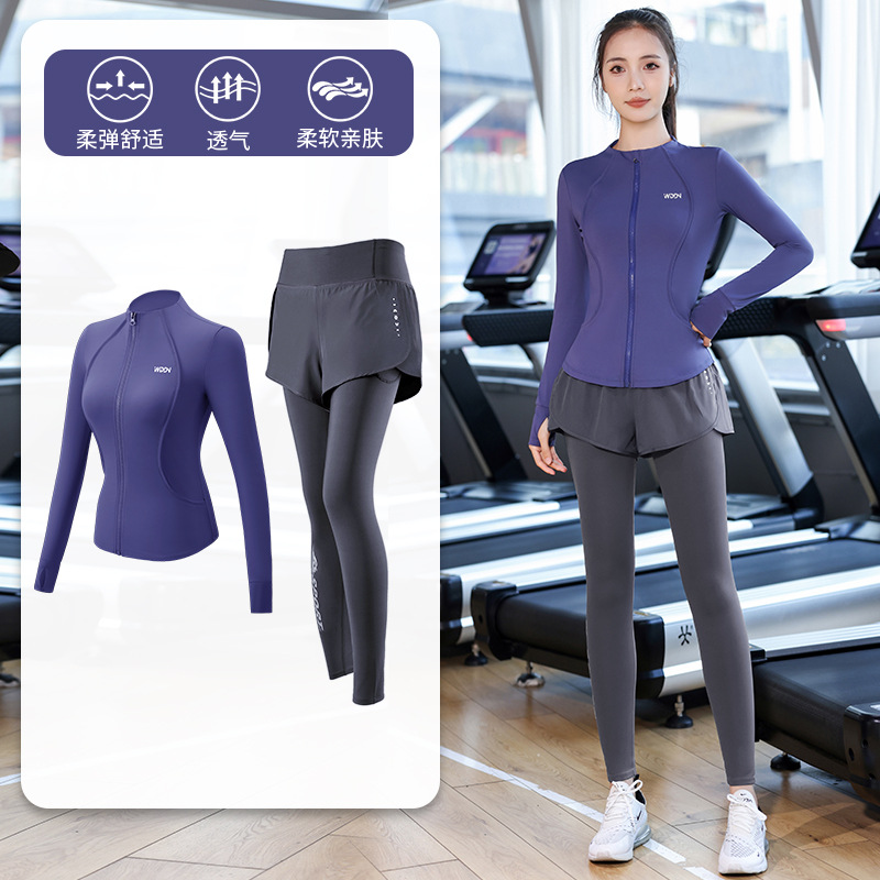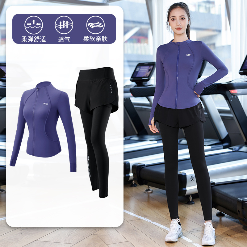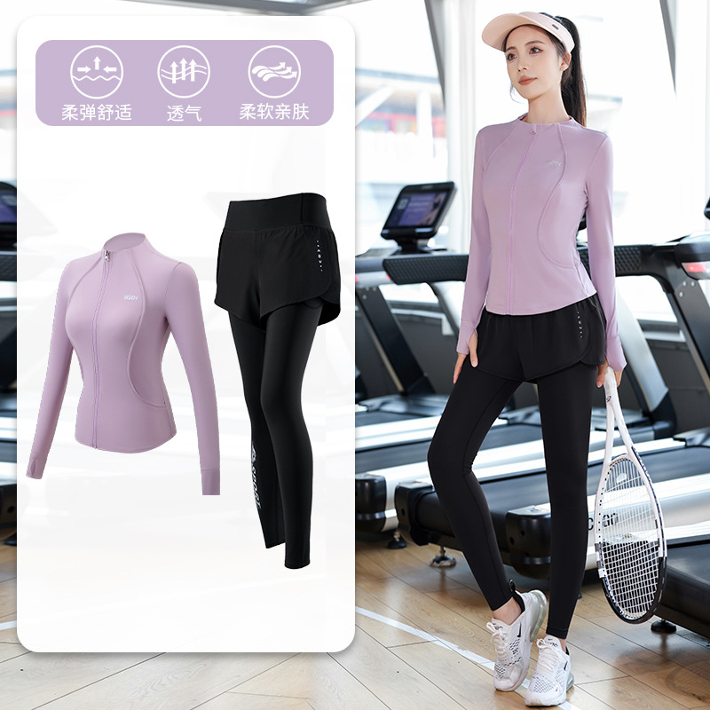 전문 야외 아침 달리기 스포츠 세트 전문 빠른 건조 의류 여성 캐주얼 패션 러닝 요가 피트니스 의류 긴 소매스토어 가기