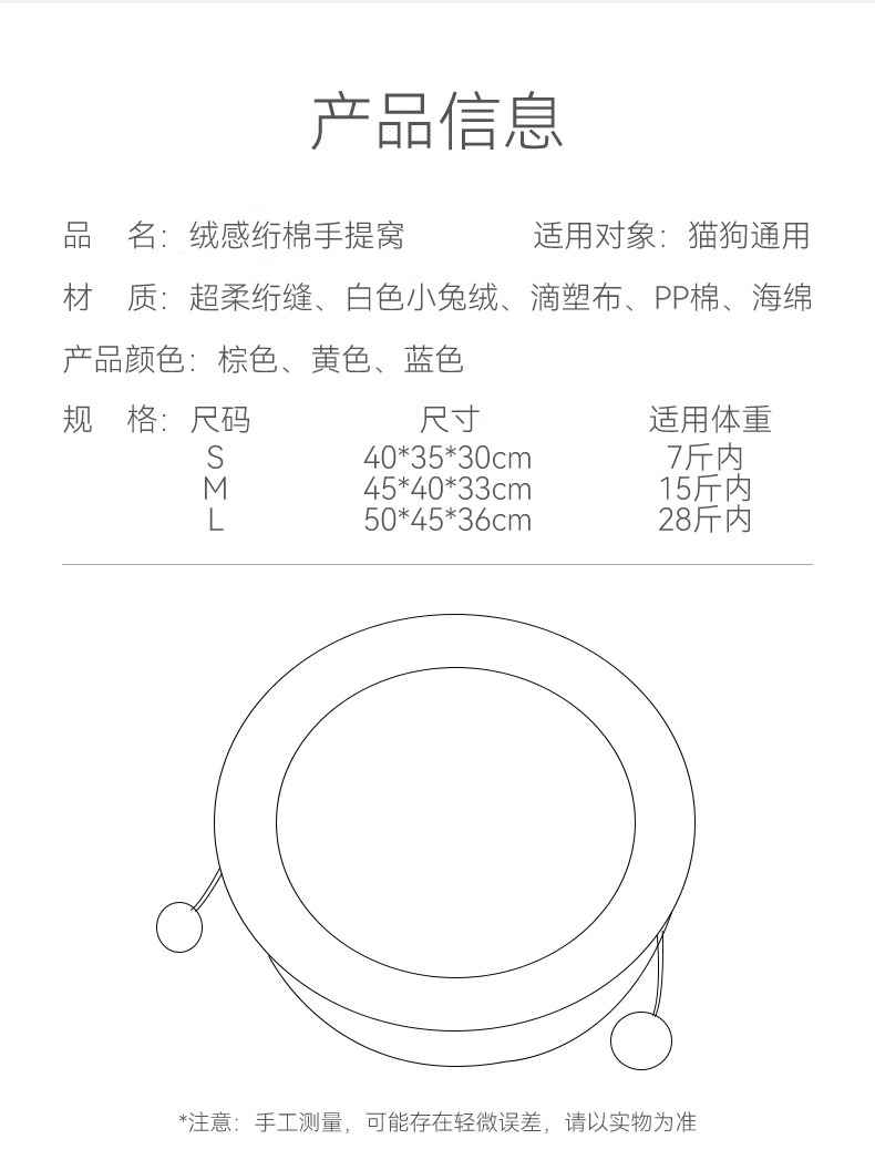 다크 브라운 접이식 양면 둥근 둥지 넓은 공간 두껍고 부드러운 손으로 운반 가을과 겨울 애완 동물 고양이 둥지 패드 도매스토어 가기