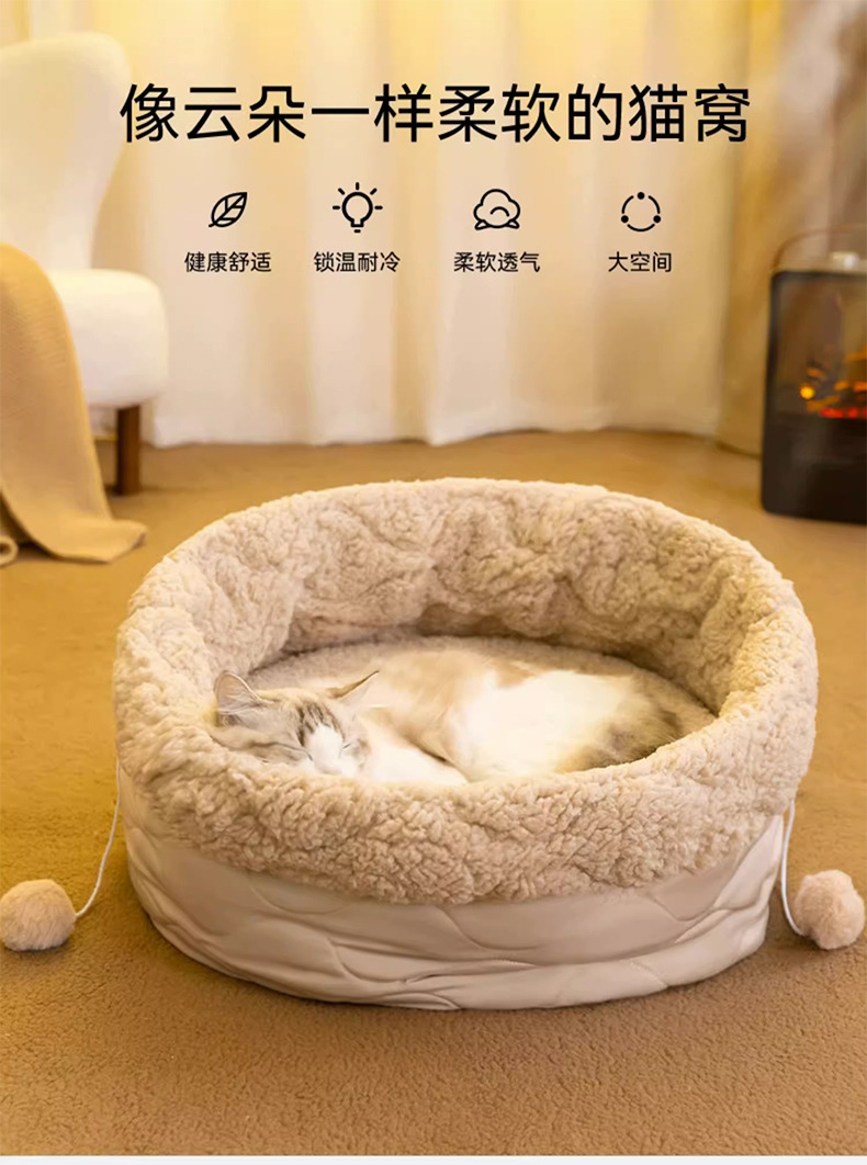 다크 브라운 접이식 양면 둥근 둥지 넓은 공간 두껍고 부드러운 손으로 운반 가을과 겨울 애완 동물 고양이 둥지 패드 도매