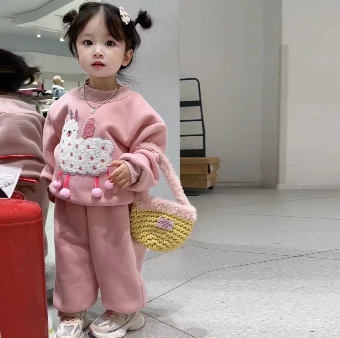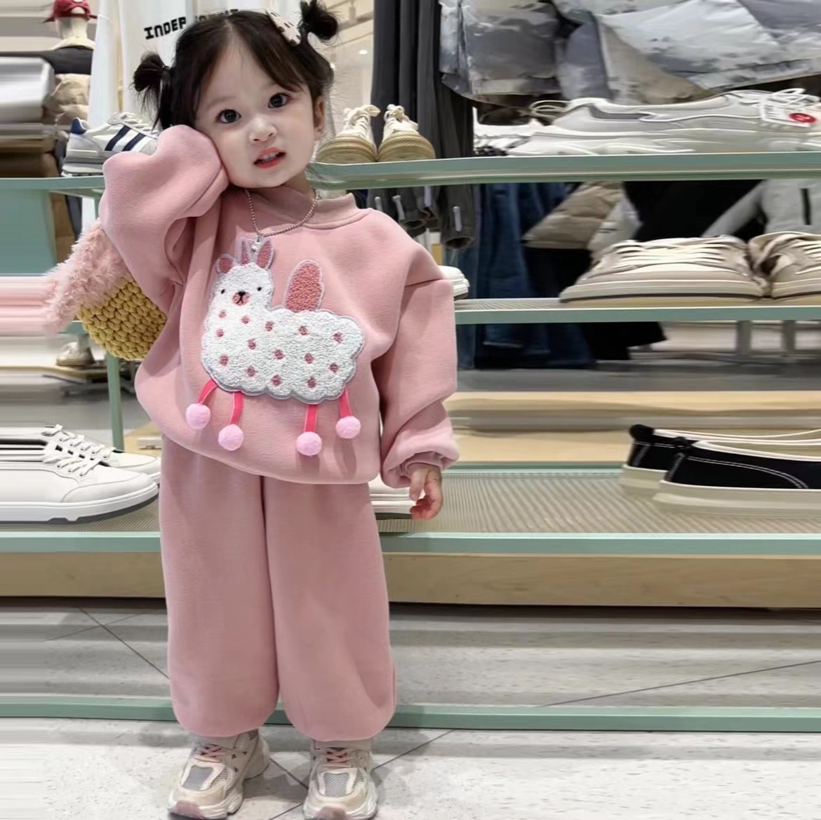 여아 겨울 한국 스타일 만화 양털 세트 2023 가을과 겨울 아기의 새로운 운동복 레깅스 두꺼운 투피스 세트스토어 가기