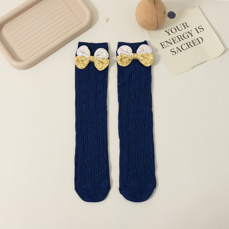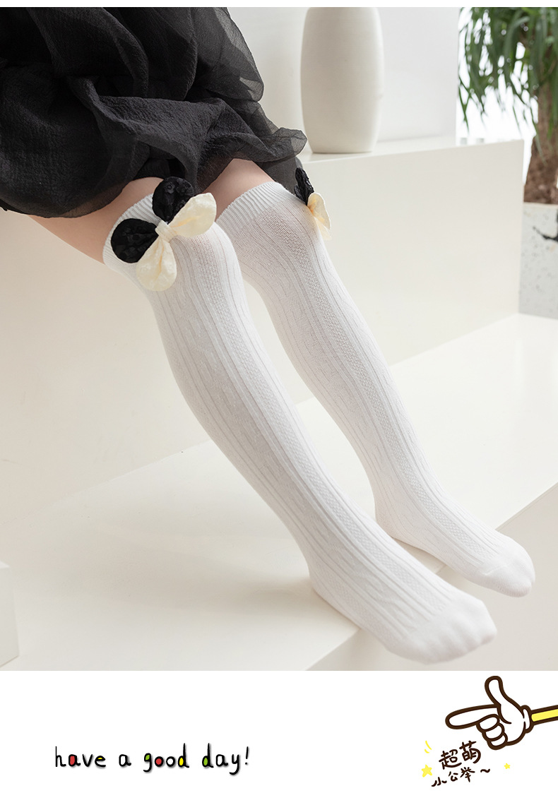 여아 양말 긴 배럴 가을 얇은 아기 면 색상 접합 트위스트 활 공주 양말 어린이 무릎 높이 양말