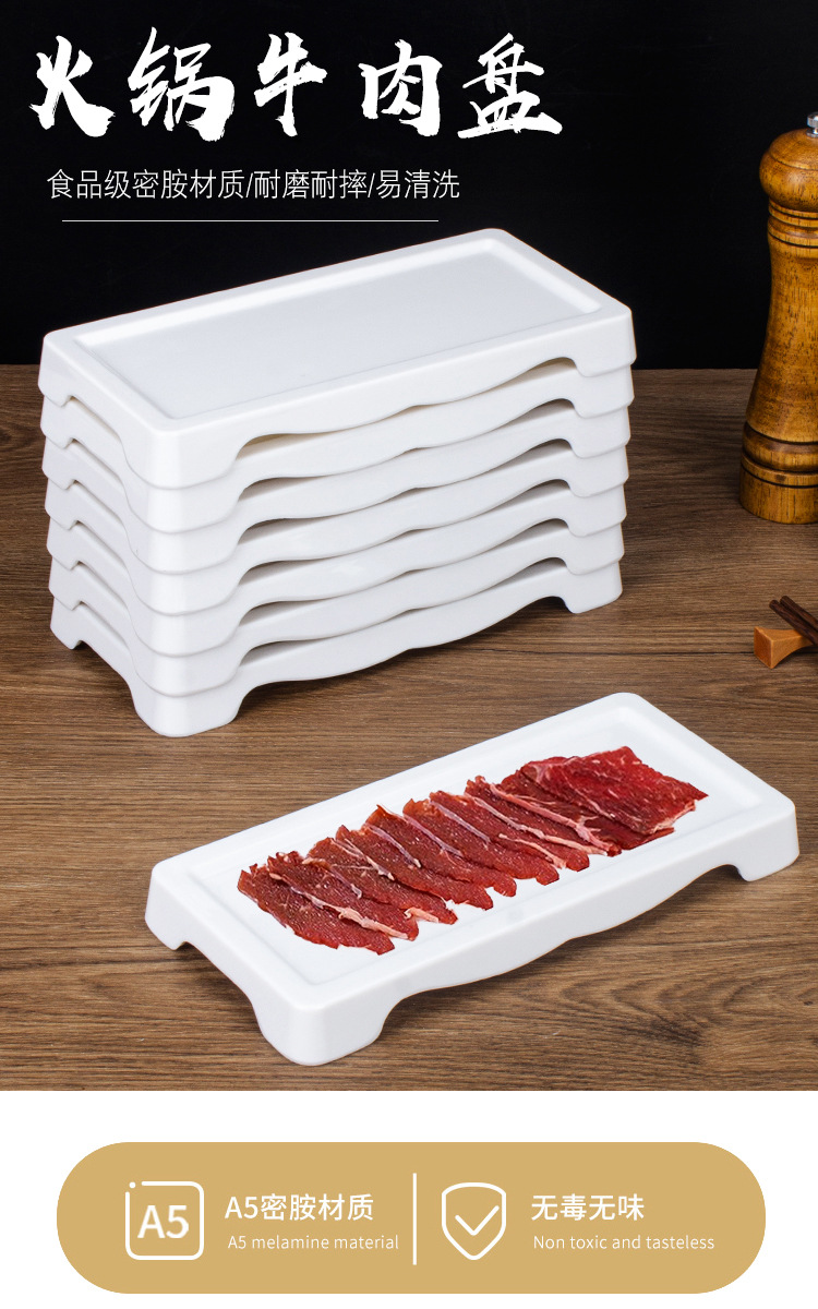 Tan Sanniang 신선한 컷 창조적 인 멜라민 핫 팟 식기 직사각형 상업용 차오산 쇠고기 핫 팟 플레이트 스택 가능 플레이트스토어 가기