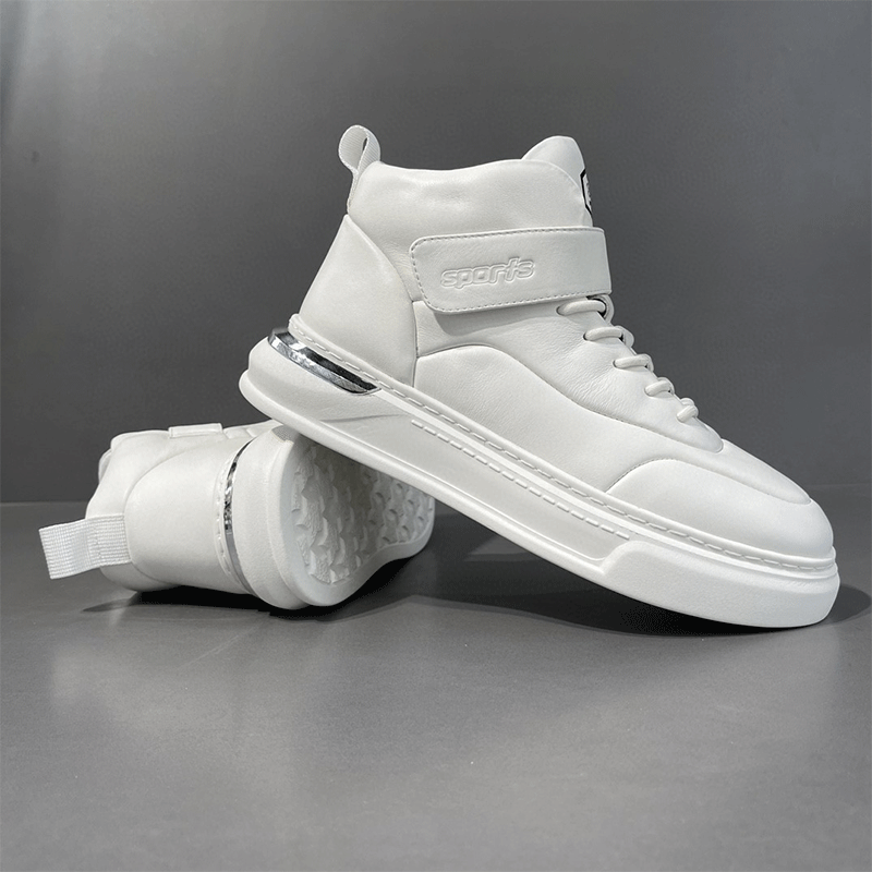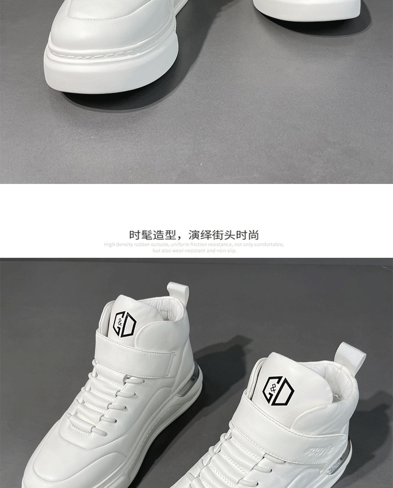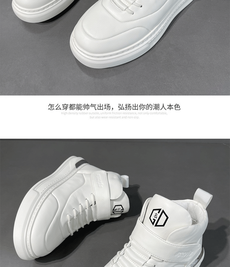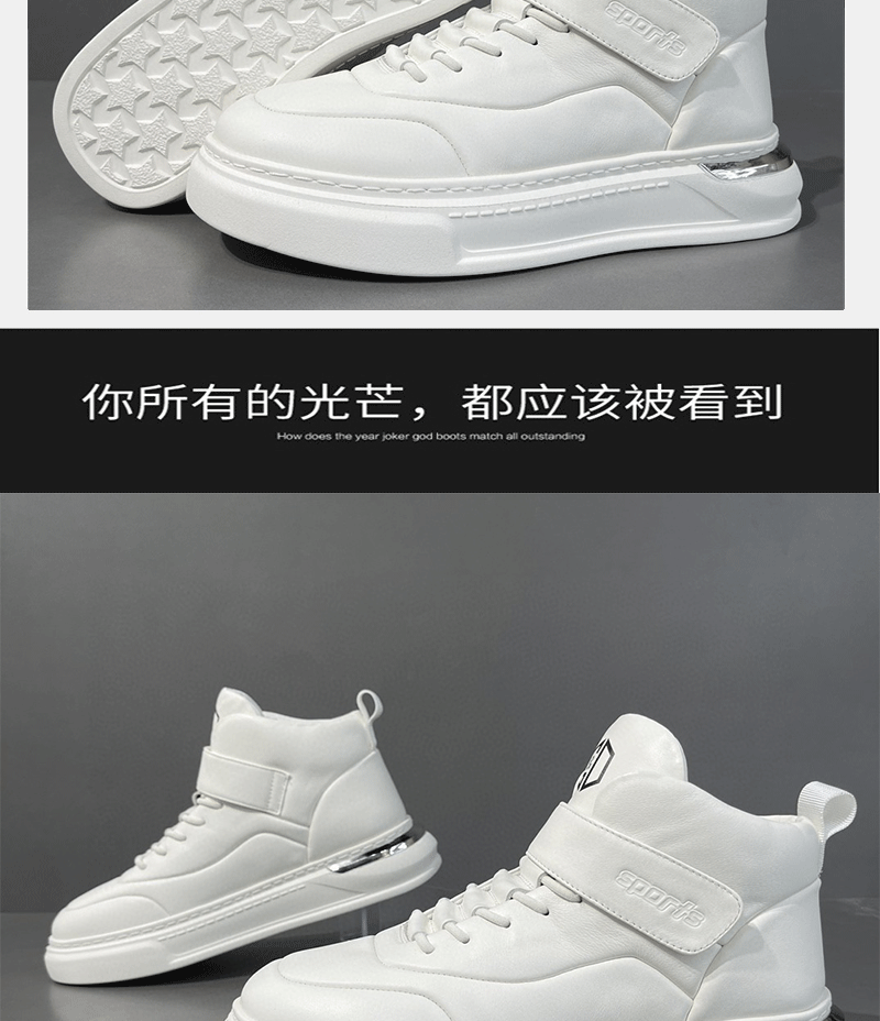 남성용 흰색 하이탑 보드 신발 남성용 트렌디 신발 소년 모든 경기 흰색 신발 가죽 아빠 신발 남성용 두꺼운 밑창 캐주얼 신발