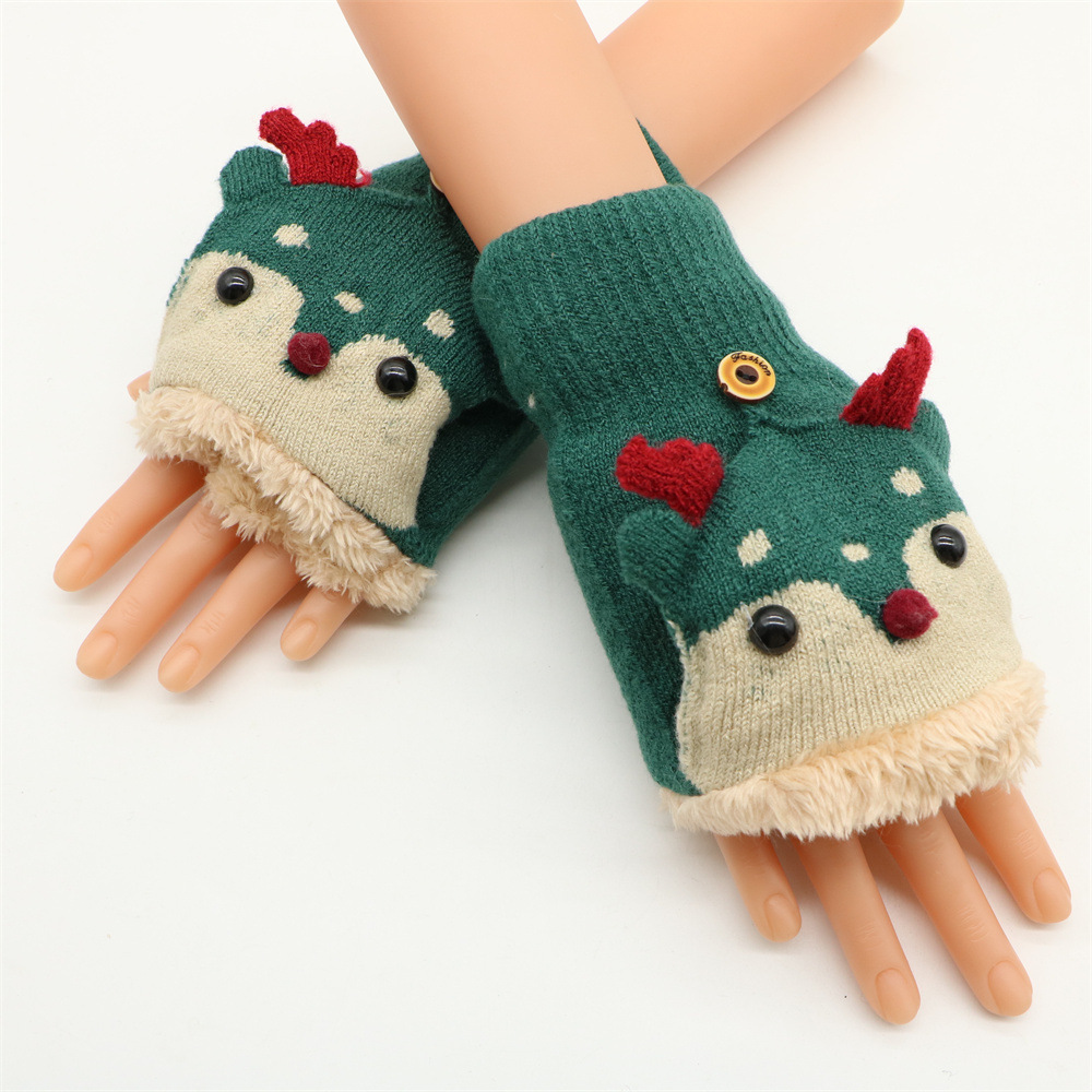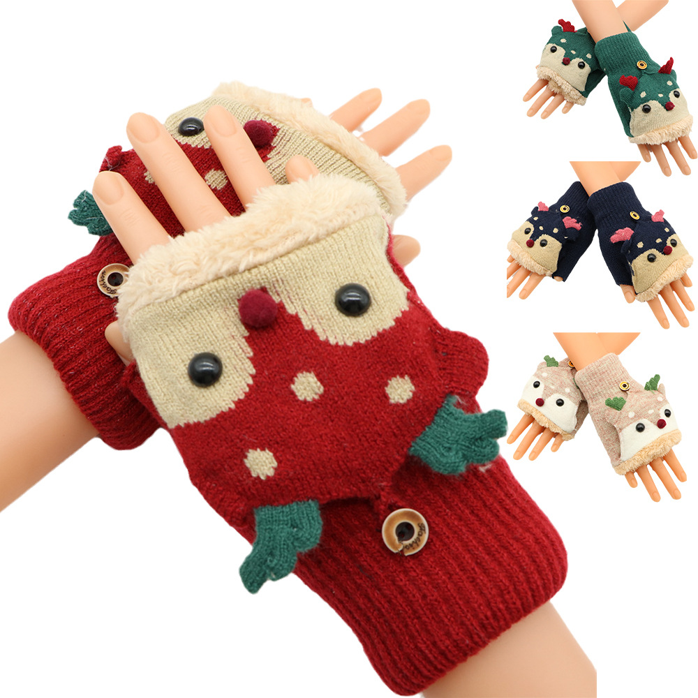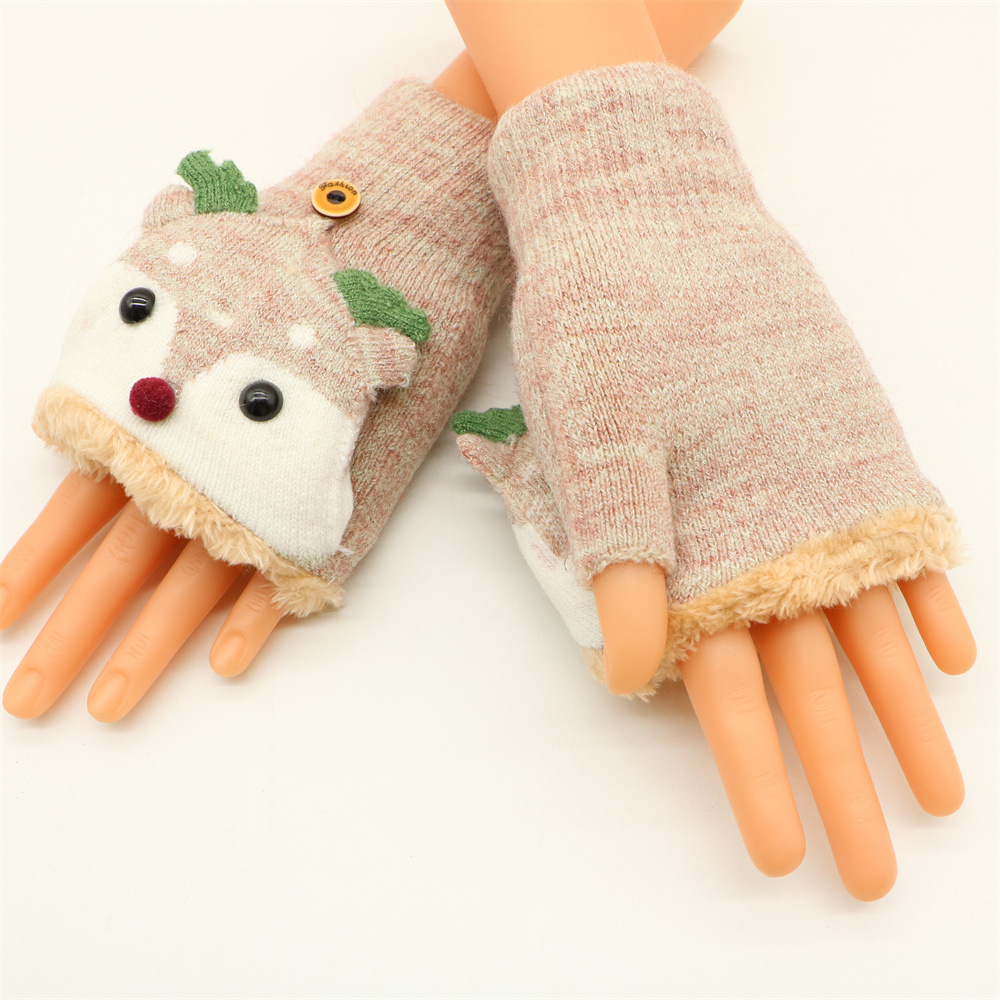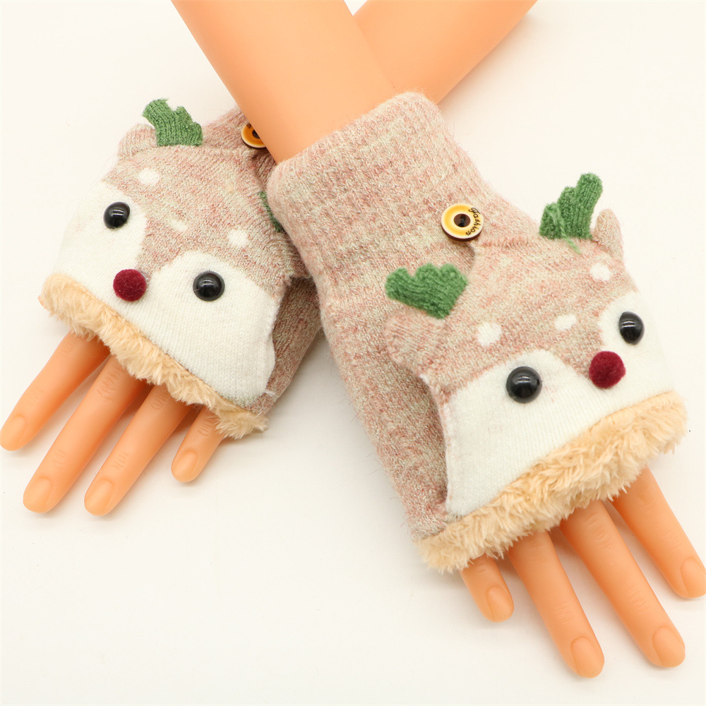 겨울 따뜻한 장갑 성인 패션 귀여운 만화 플립 기모 두꺼운 학생 쓰기 반 손가락 장갑 도매스토어 가기