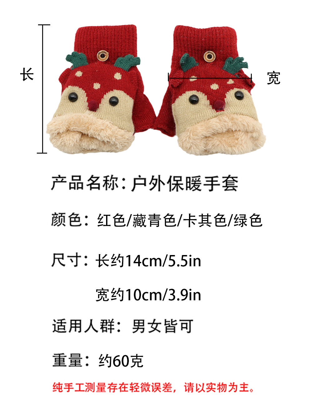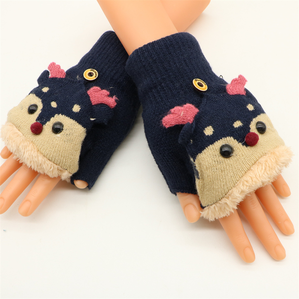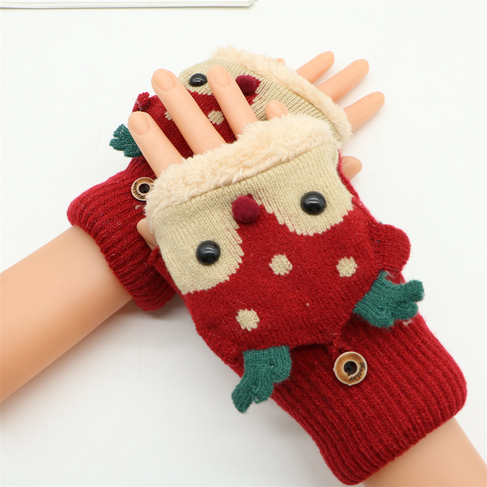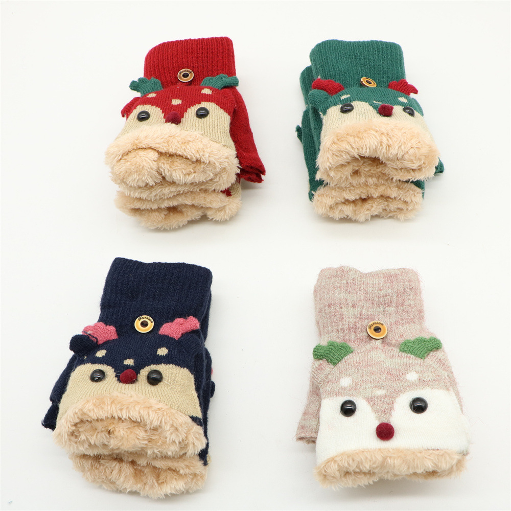 겨울 따뜻한 장갑 성인 패션 귀여운 만화 플립 기모 두꺼운 학생 쓰기 반 손가락 장갑 도매스토어 가기