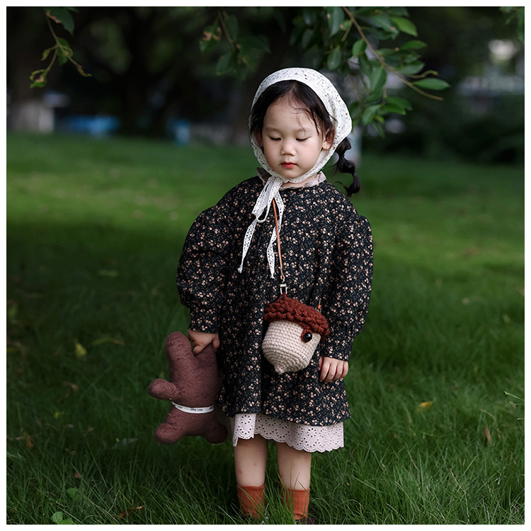 어린이 가방 가을과 겨울 새로운 사이버 레드 버섯 모양 수제 니트 가방 작은 빨간 책 소녀의 양모 립스틱 크로스 바디 백