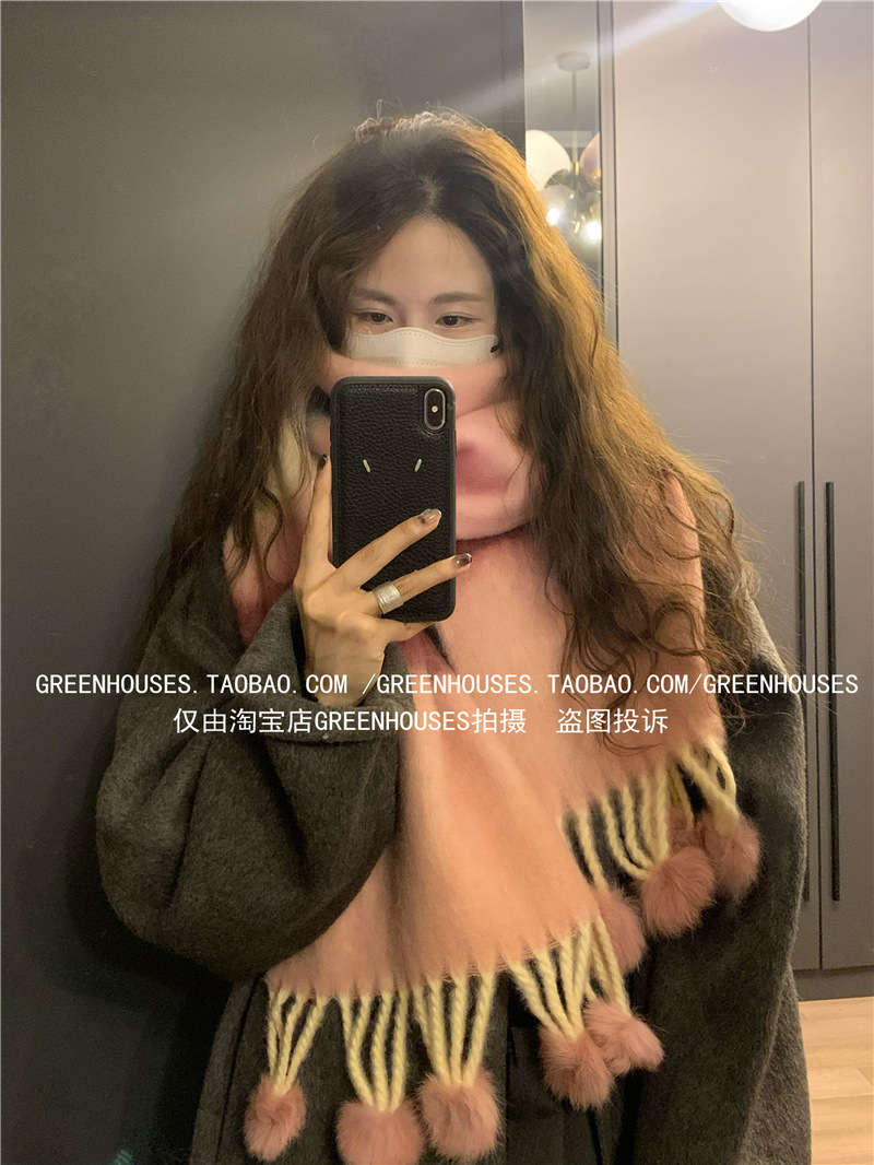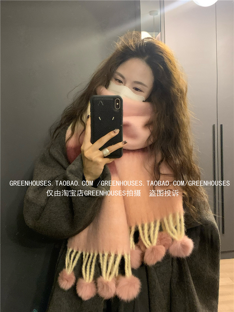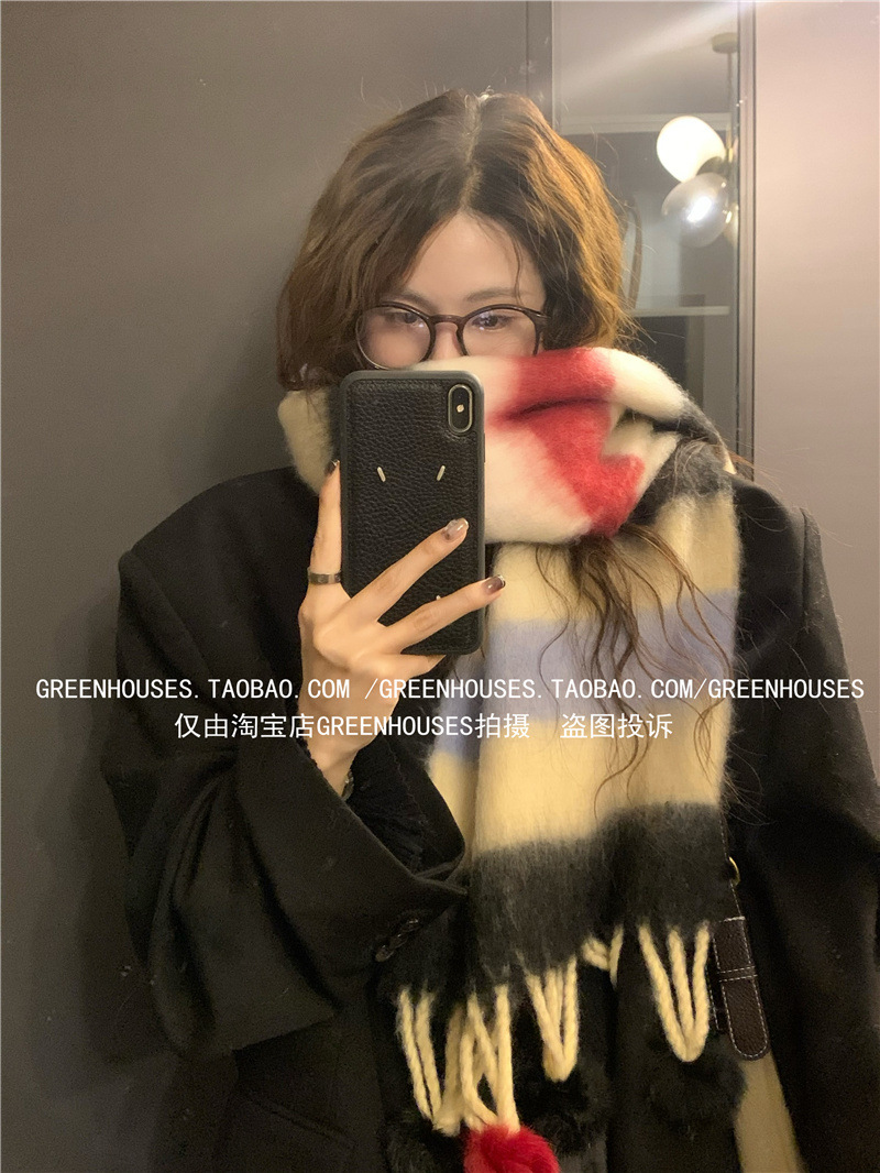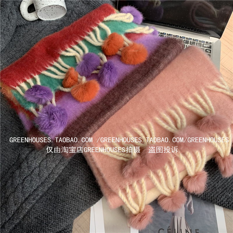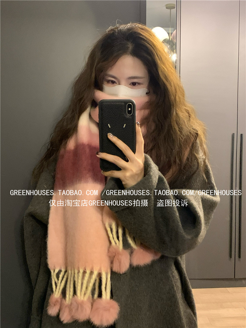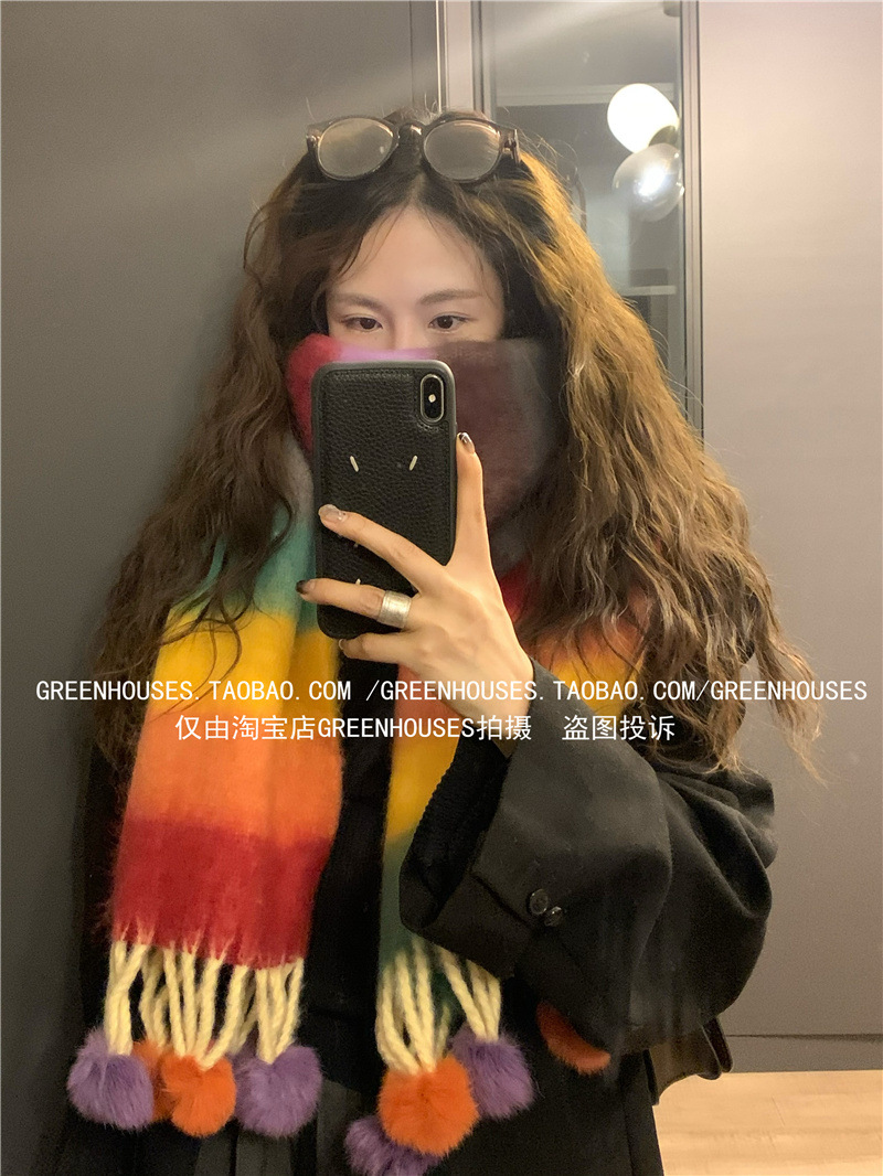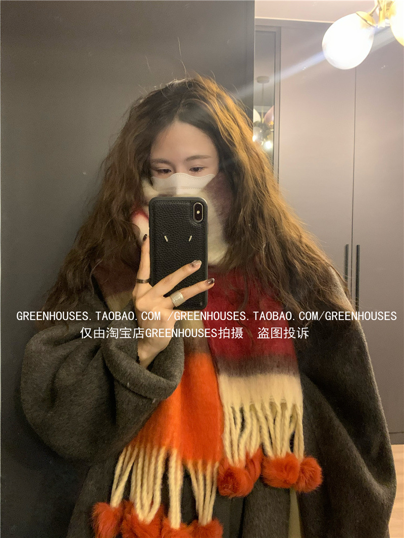 도파민 컬러 스트라이프 모헤어 스카프 여성의 가을과 겨울 두꺼운 따뜻한 토끼 헤어 볼 스카프 긴 숄스토어 가기